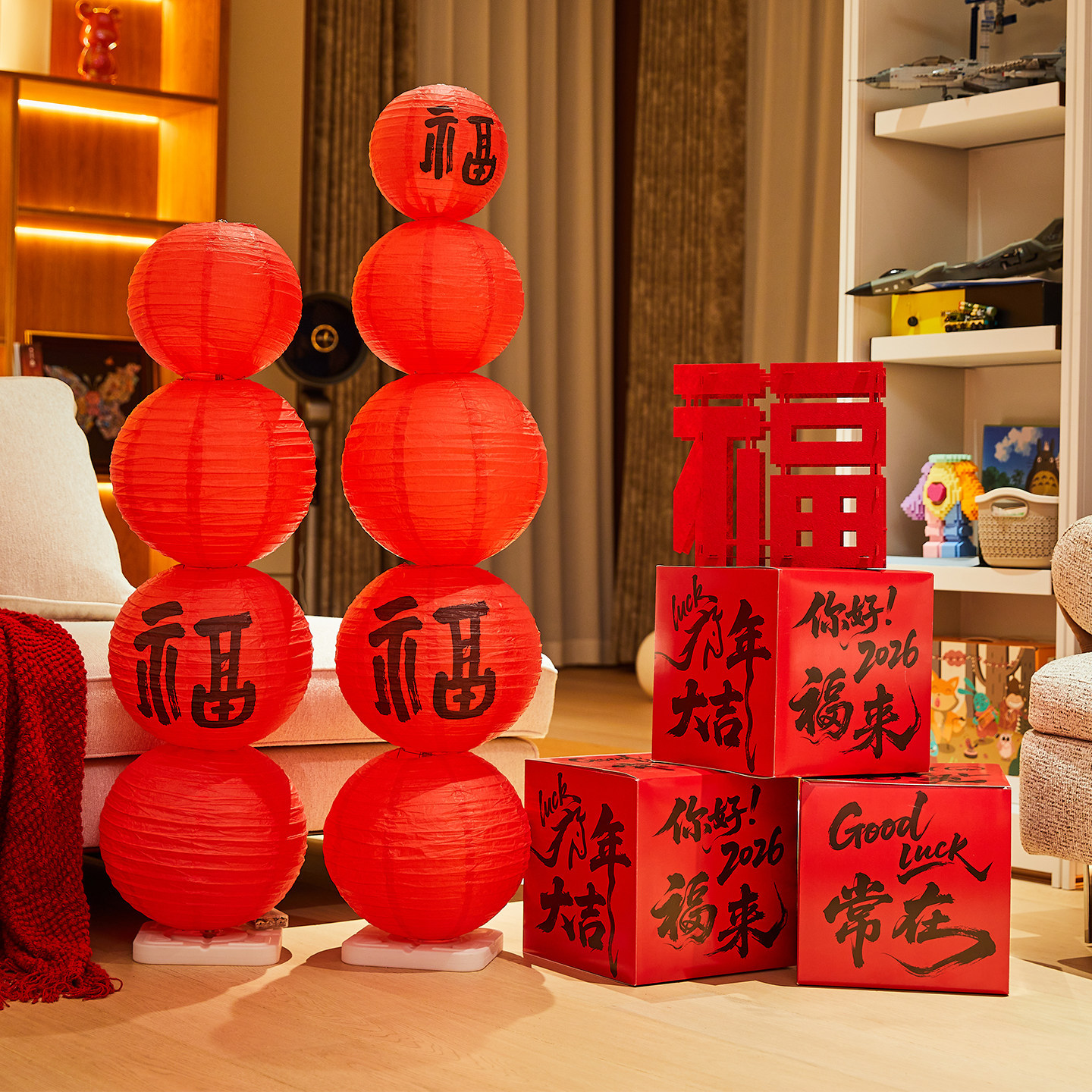 尺寸 | 全红灯笼大4中2+福字灯笼大2小1+02礼盒3个+立体福1+支架2 | | 尺寸 | 全红灯笼大4中2+福字灯笼大2小1+02礼盒3个+立体福1+支架2[亮灯款] |