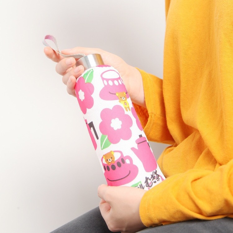 日单 卡通鬆弛熊可爱隔热杯套 隔热玻璃杯套 大容量松紧布袋
