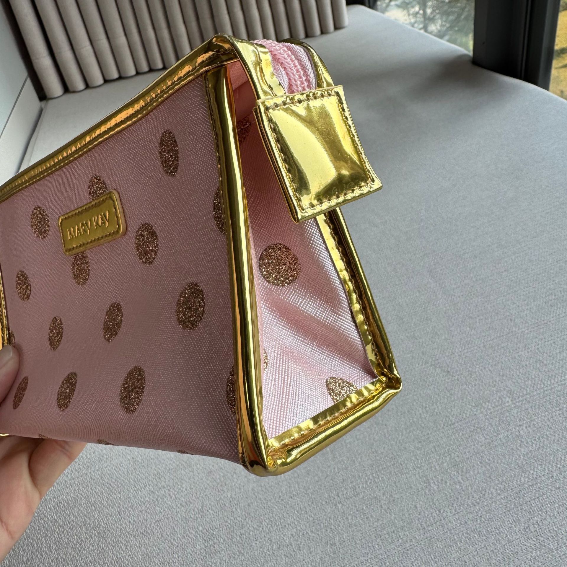出口欧美原单 粉金玫琳凯化妆包 轻奢高级感收纳包 大容量洗漱包