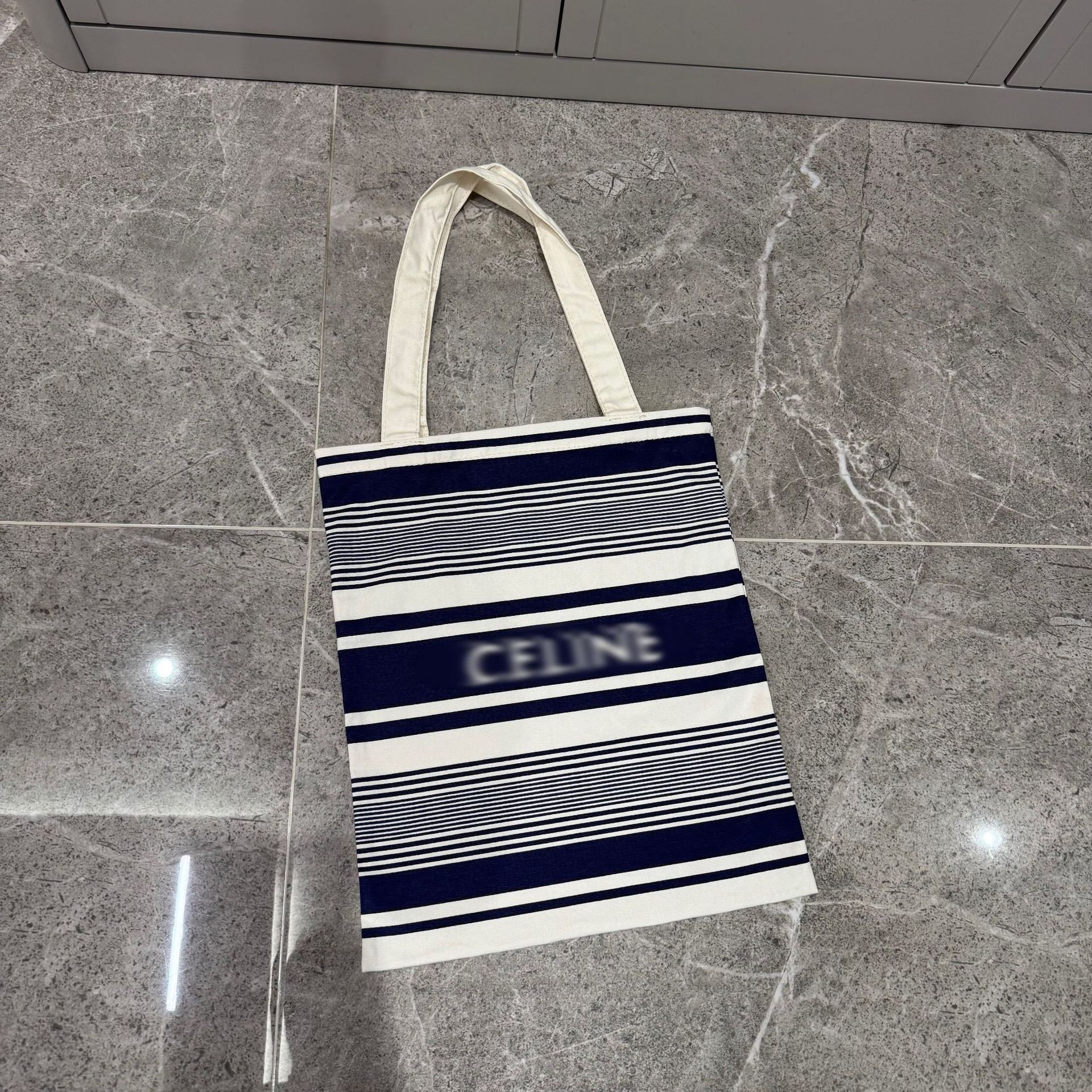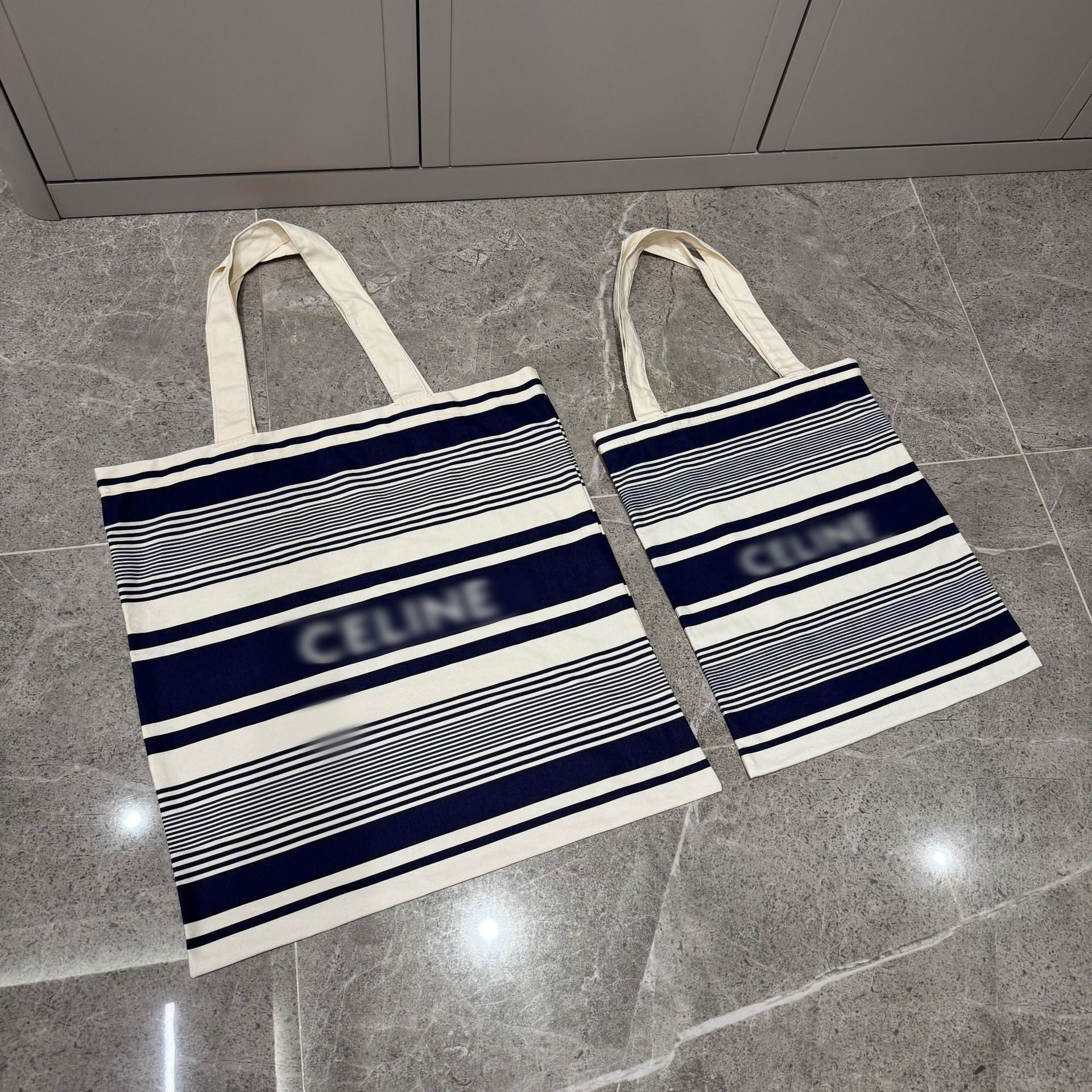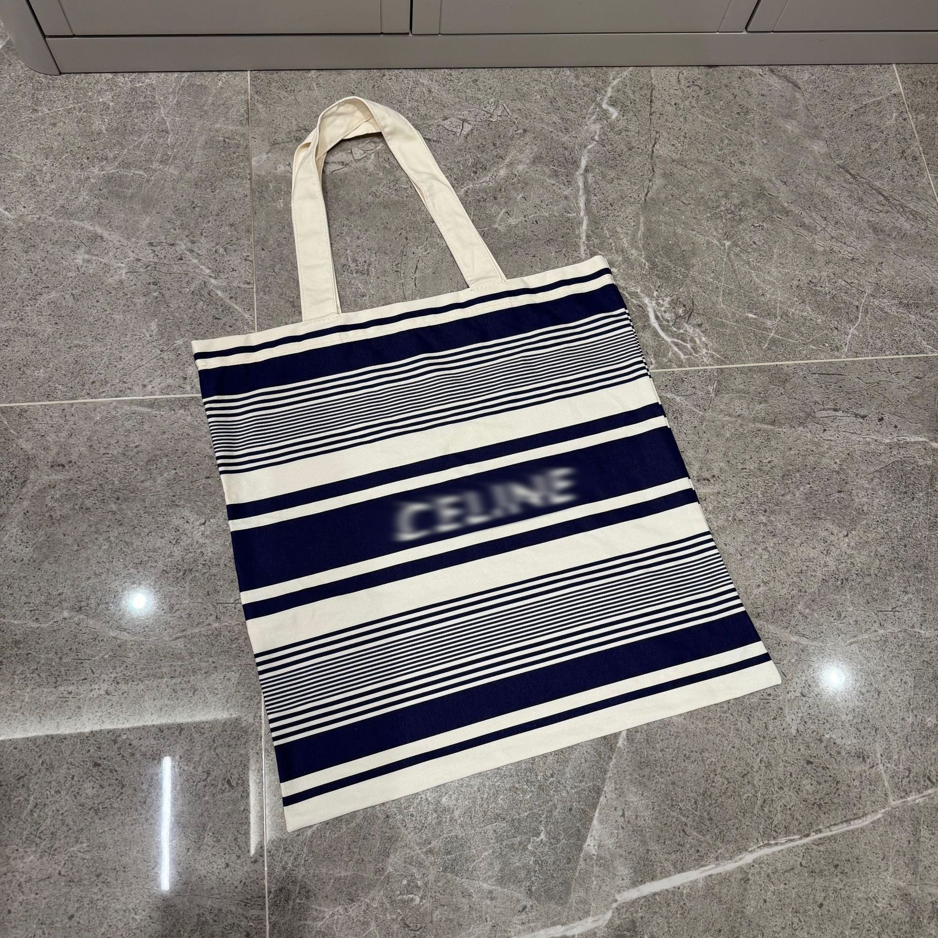 快闪店限定款 兰白条纹帆布袋 户外度假手提单肩包 大小号购物袋