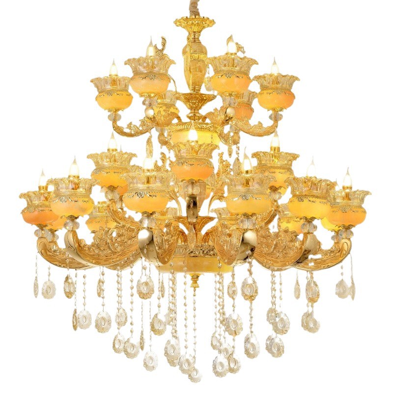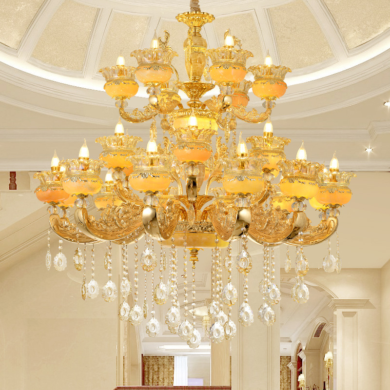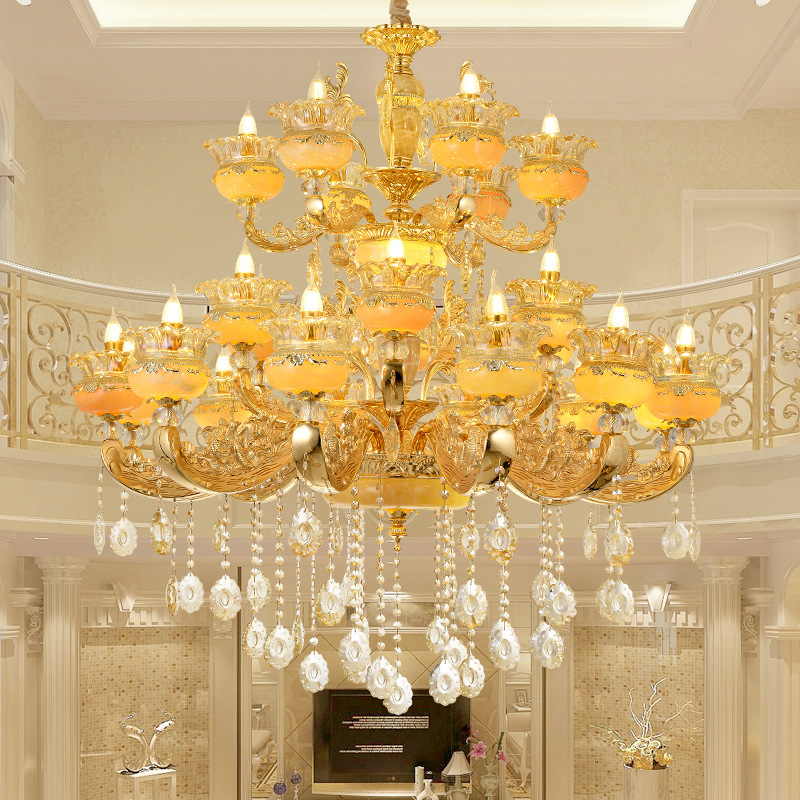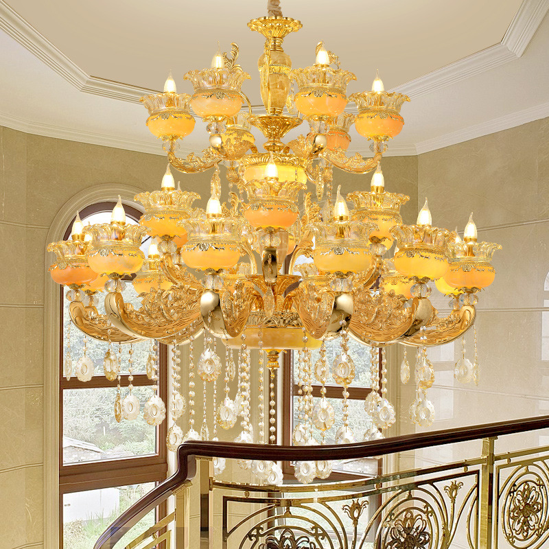 欧式别墅玉石吊灯客厅灯复式楼loft灯大气奢华中空楼梯水晶长吊灯