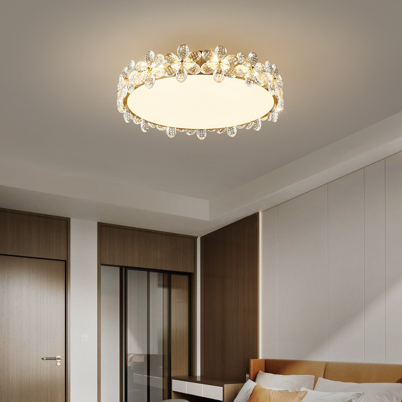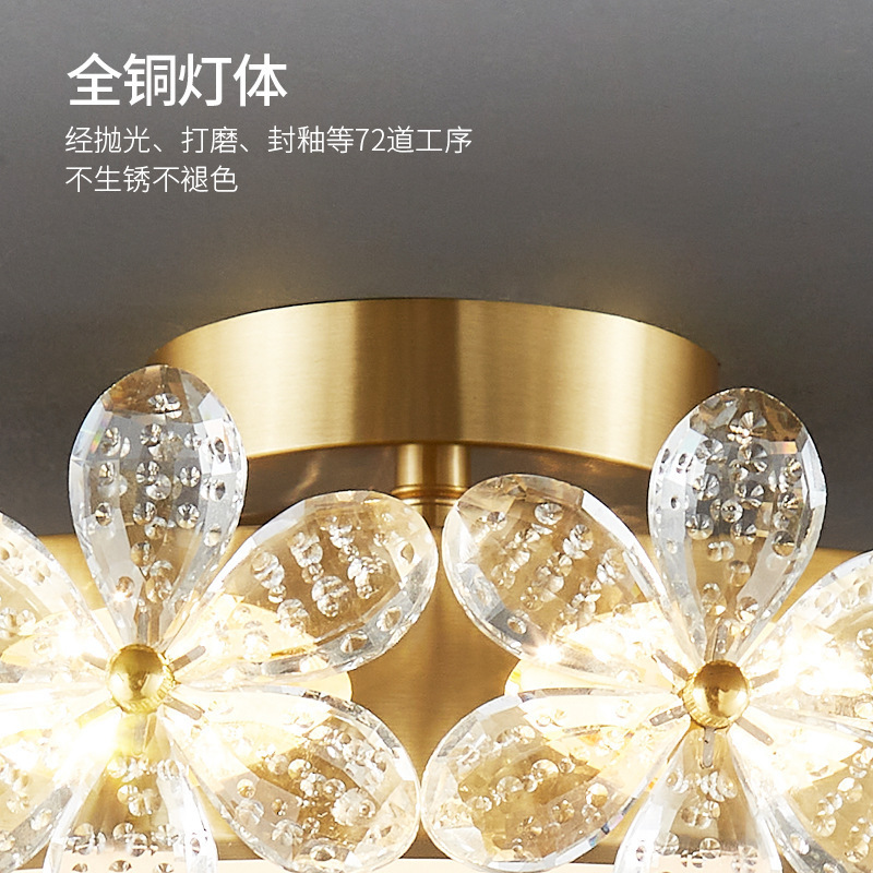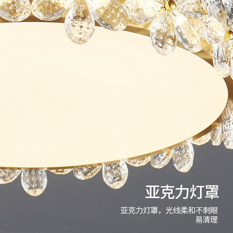 全铜卧室灯吸顶灯现代简约轻奢花瓣水晶客厅餐厅创意圆形北欧灯具