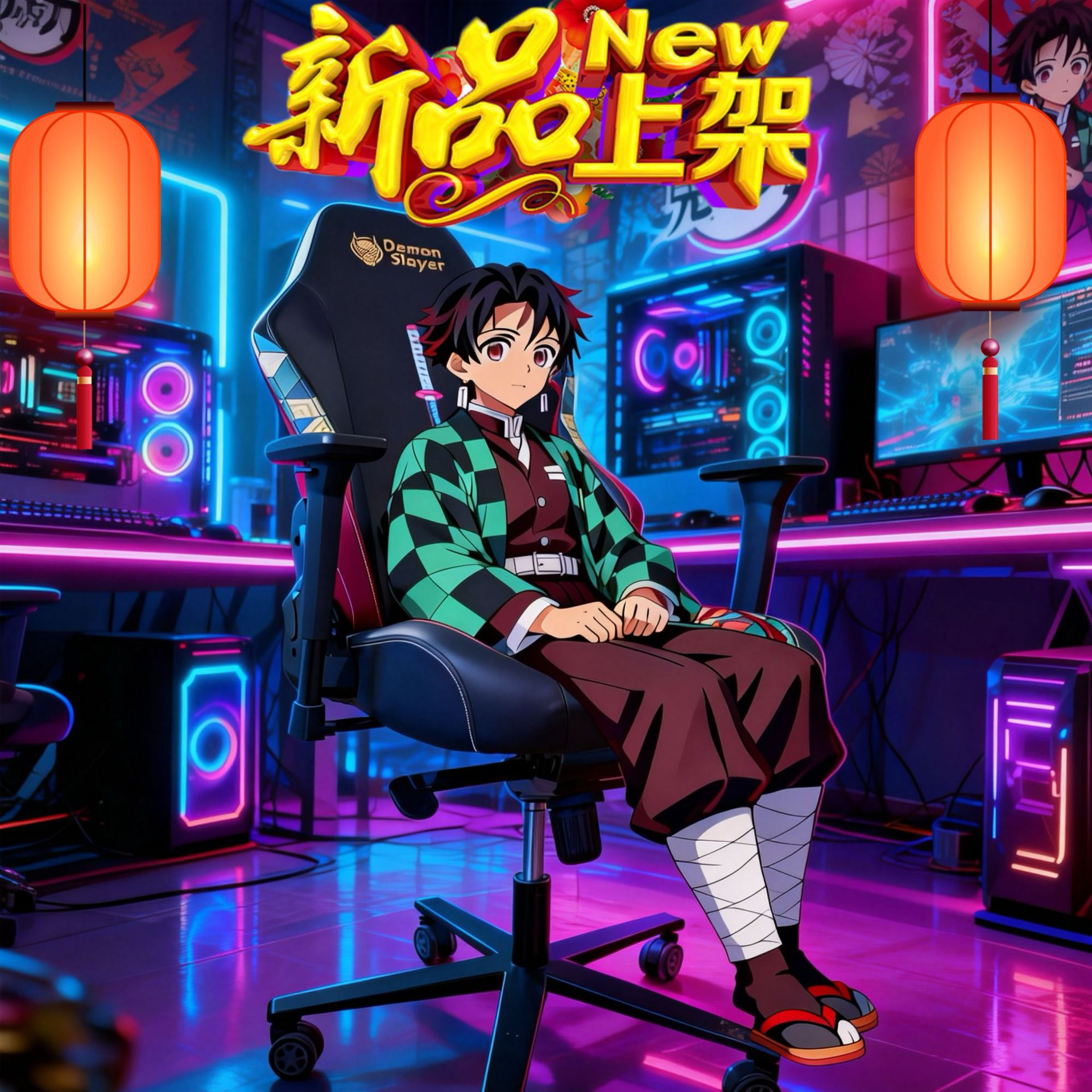 鬼灭之刃电竞椅数码印花PU皮高回弹海绵大角度可躺游戏椅源头人体