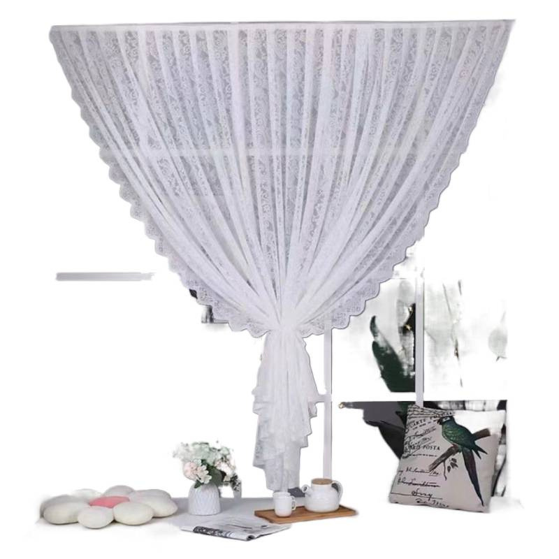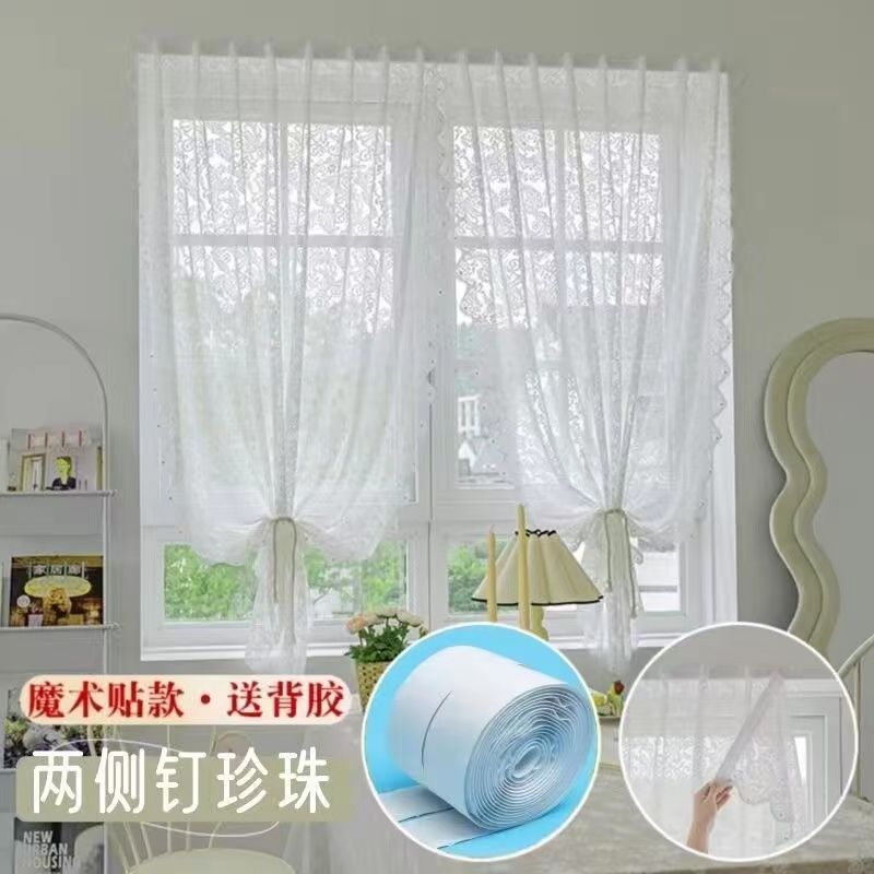 纱帘飘窗开窗钉珠法式复古魔术贴免遮挡打孔蕾丝田园窗帘门帘隔断