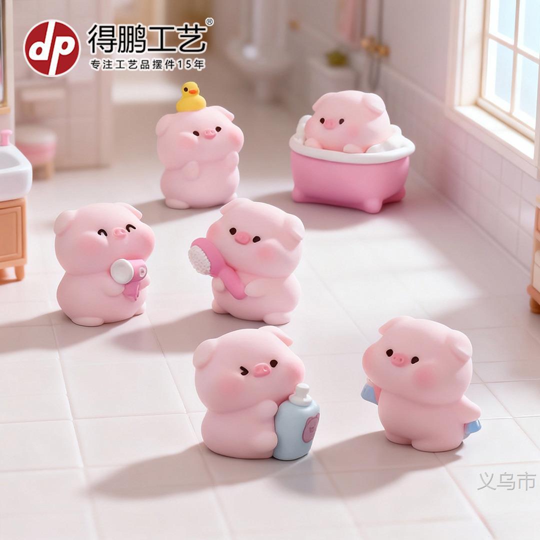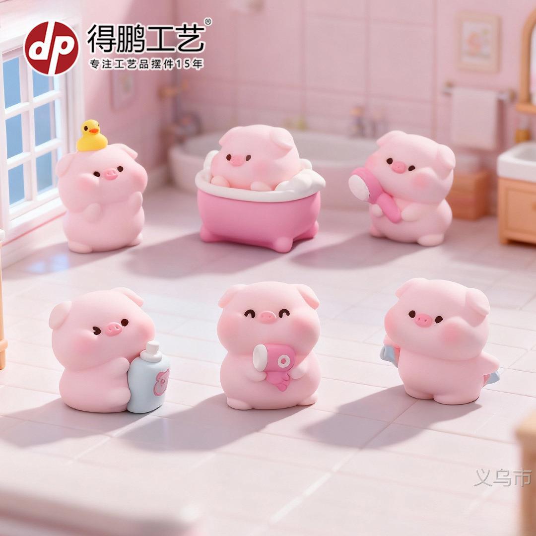 新款可爱沐浴小猪萌粒公仔 树脂工艺品diy桌面车载小摆件盲袋配件