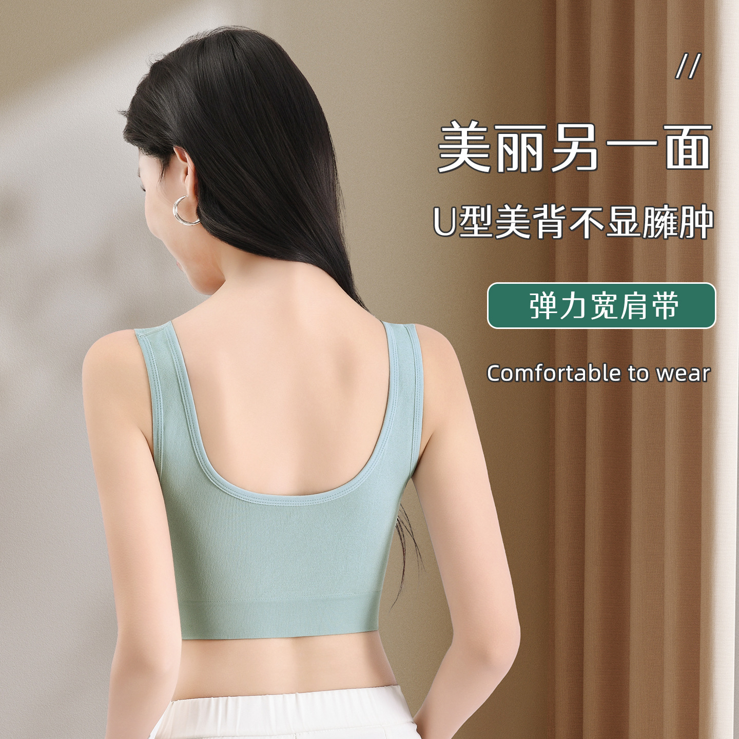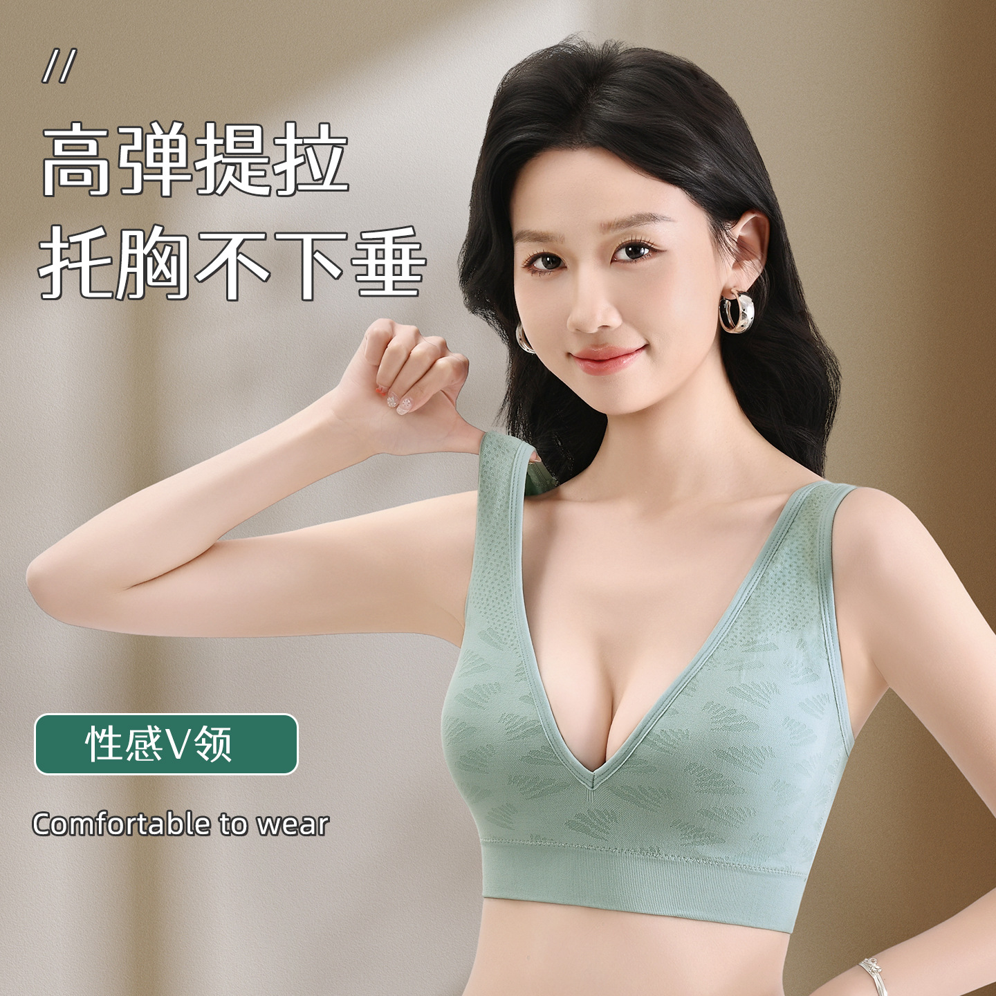 跨境无缝大码V型美背内衣女聚拢无钢圈侧收副乳背心式女士文胸罩