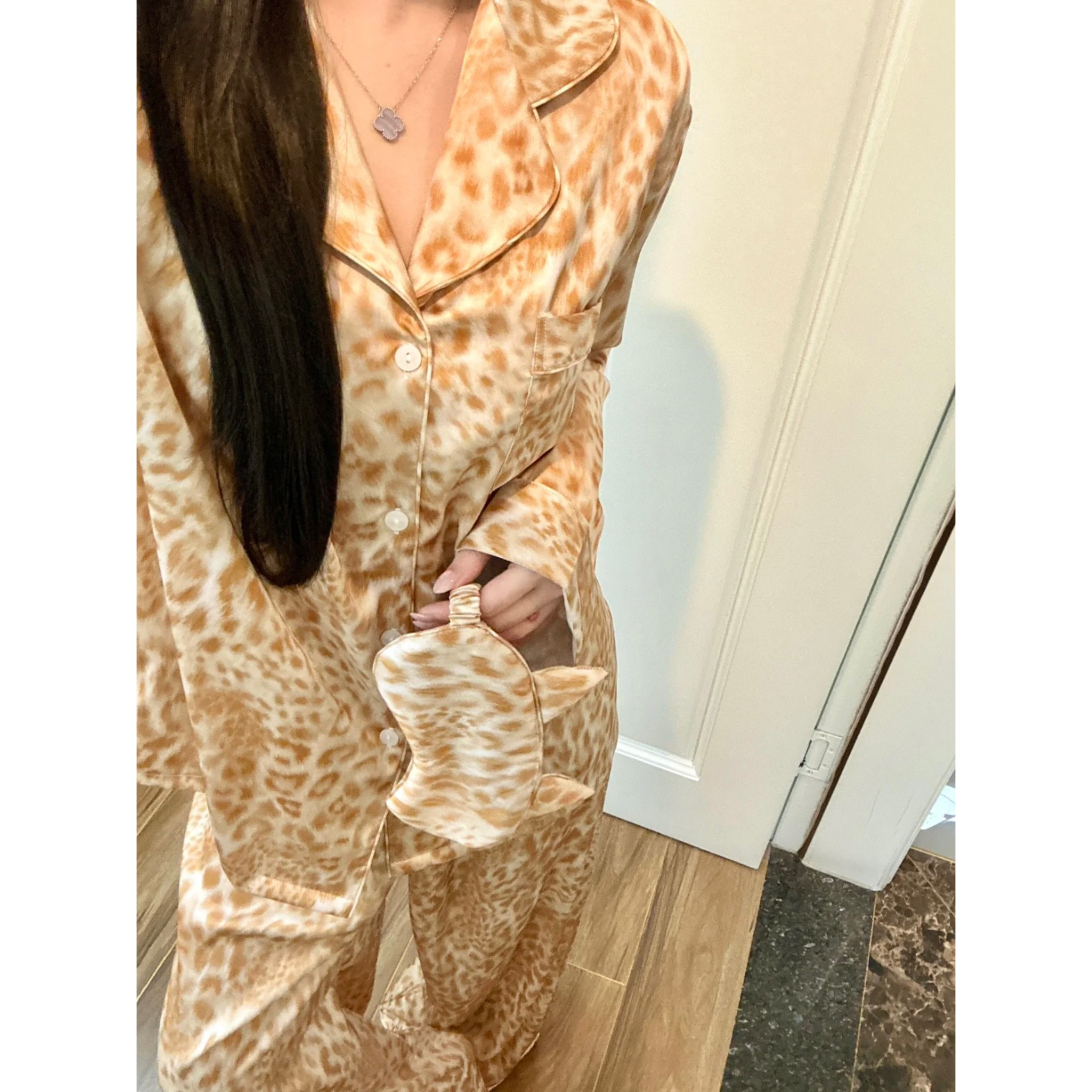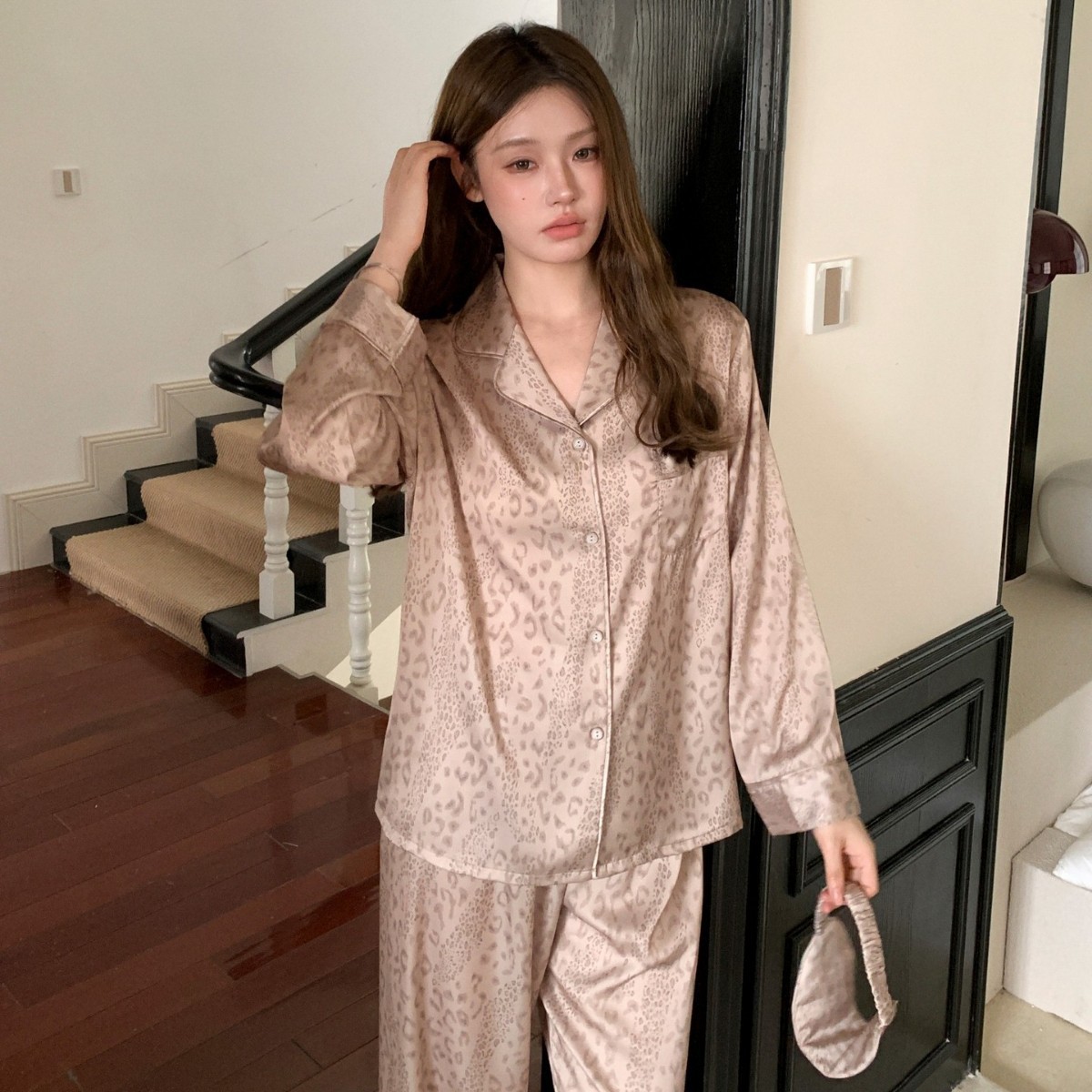 冰丝睡衣豹纹睡衣女高级感长袖长裤套装小红书同款家居服跨境外贸