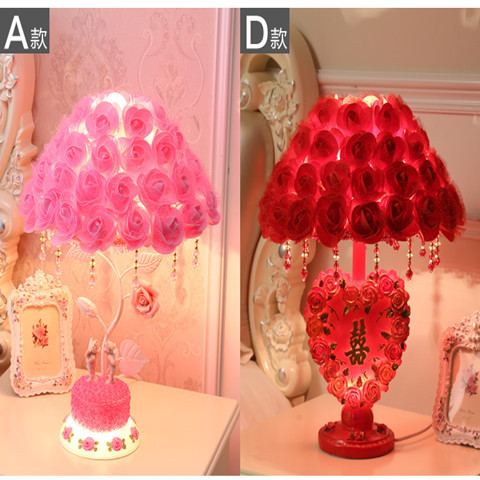 结婚浪漫卧室婚房床头灯婚庆红色喜庆台灯创意礼物长明灯玫瑰灯