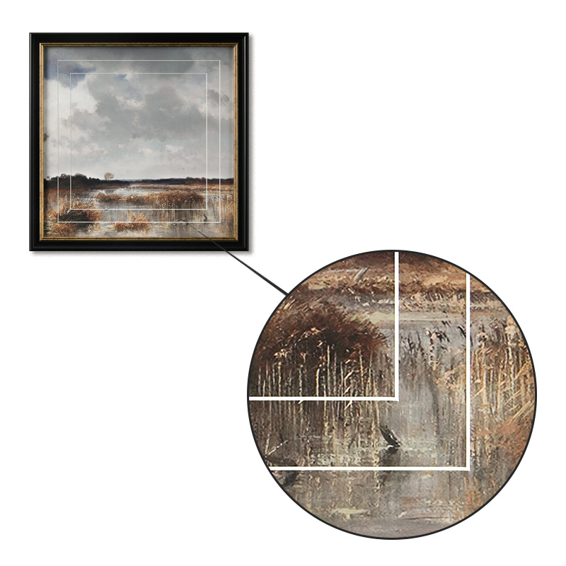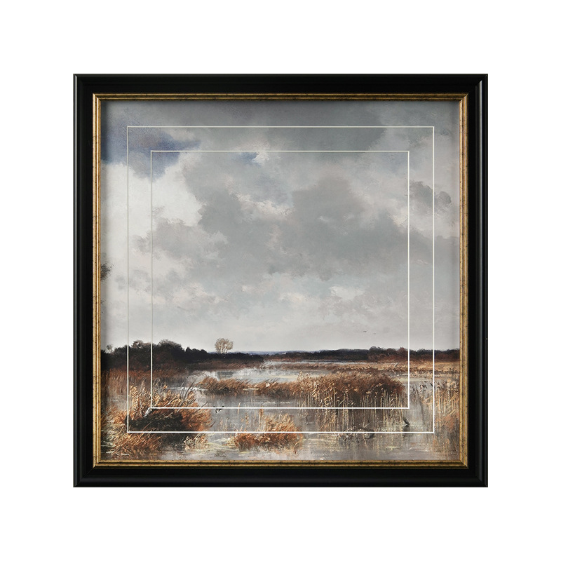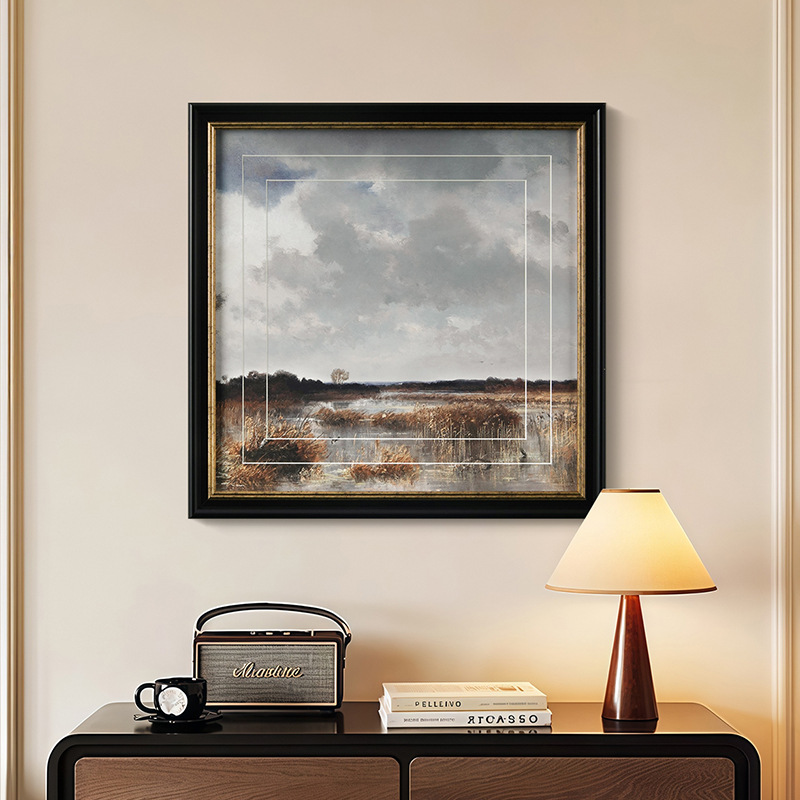 盈浩中古风装饰画高级感餐厅风景挂画客厅玄关边斗柜双层卡纸工艺