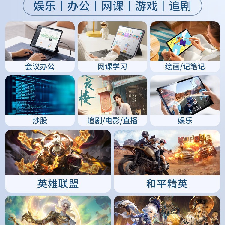 | 内存容量 | 16G运行+512G内存顶配版送鼠标键盘+触摸笔+保护套+送学习软件 | 内存容量 | 16G运行+1024G内存顶配版送鼠标键盘+触摸笔+保护套+送学习软件 |