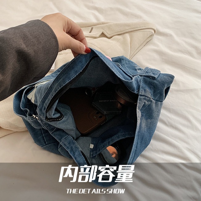 大容量托特包包女新款时尚民族风学生手提上课包牛仔布单肩包bags