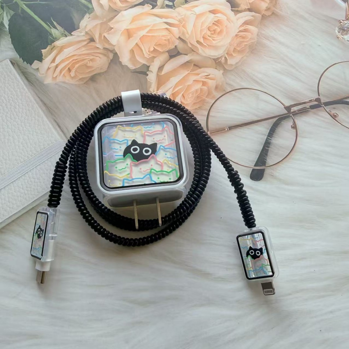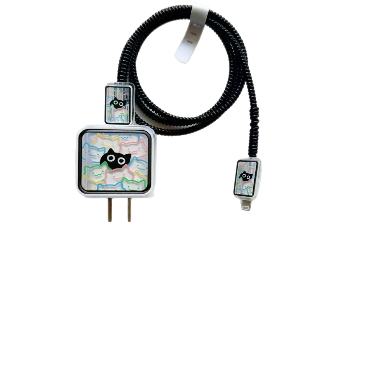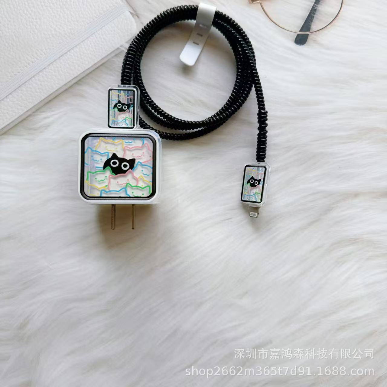 线条猫咪适用于苹果20w充头保护套18w快充线夹数据线保护壳