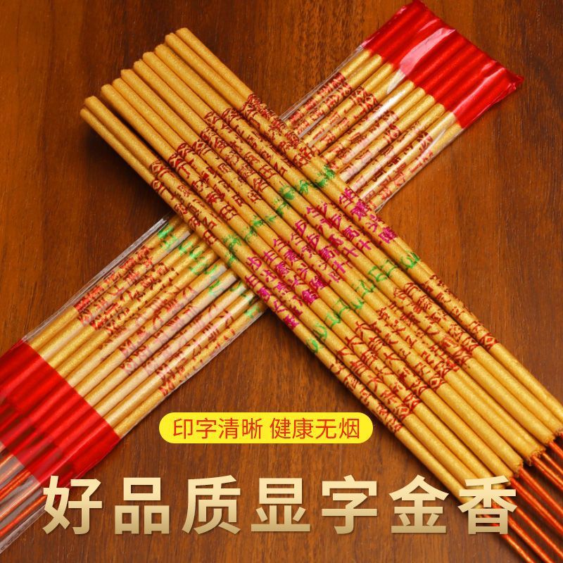 金色檀香财神香显字香家用加粗敬神香微烟烫金字香室内外上香通用
