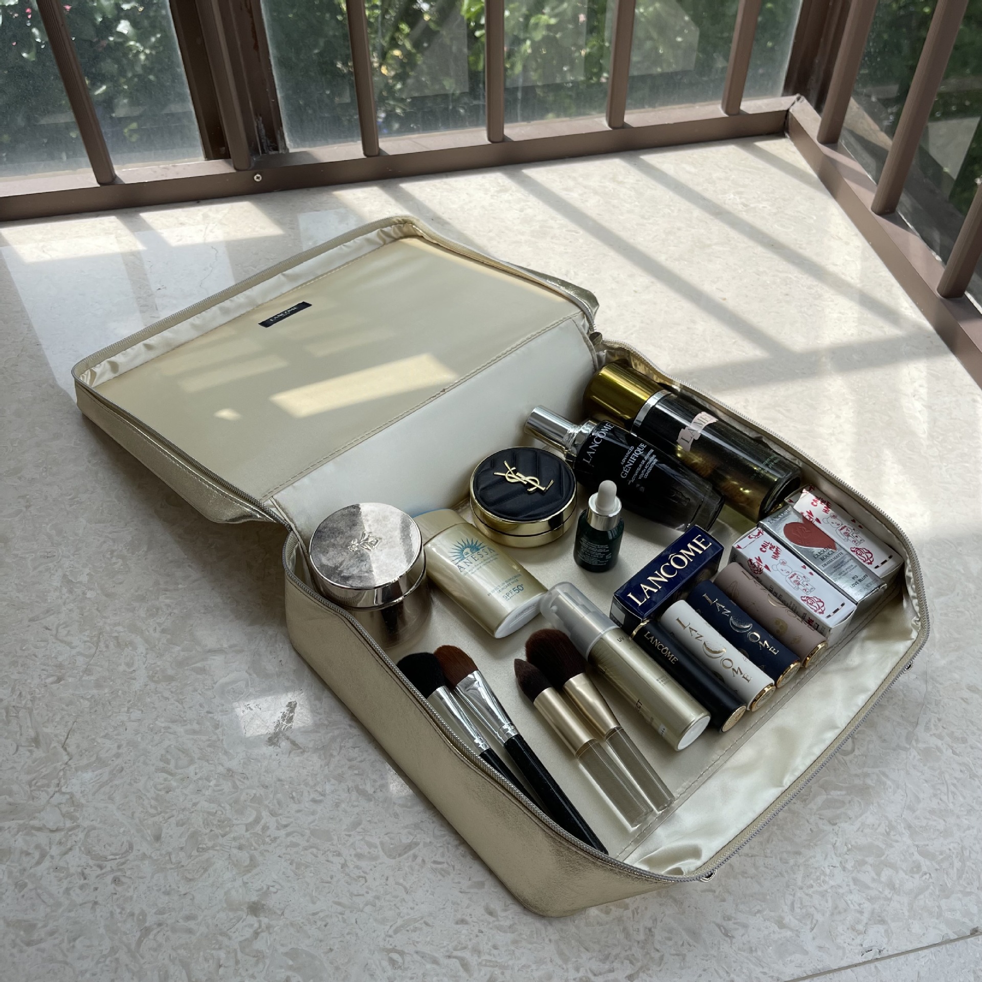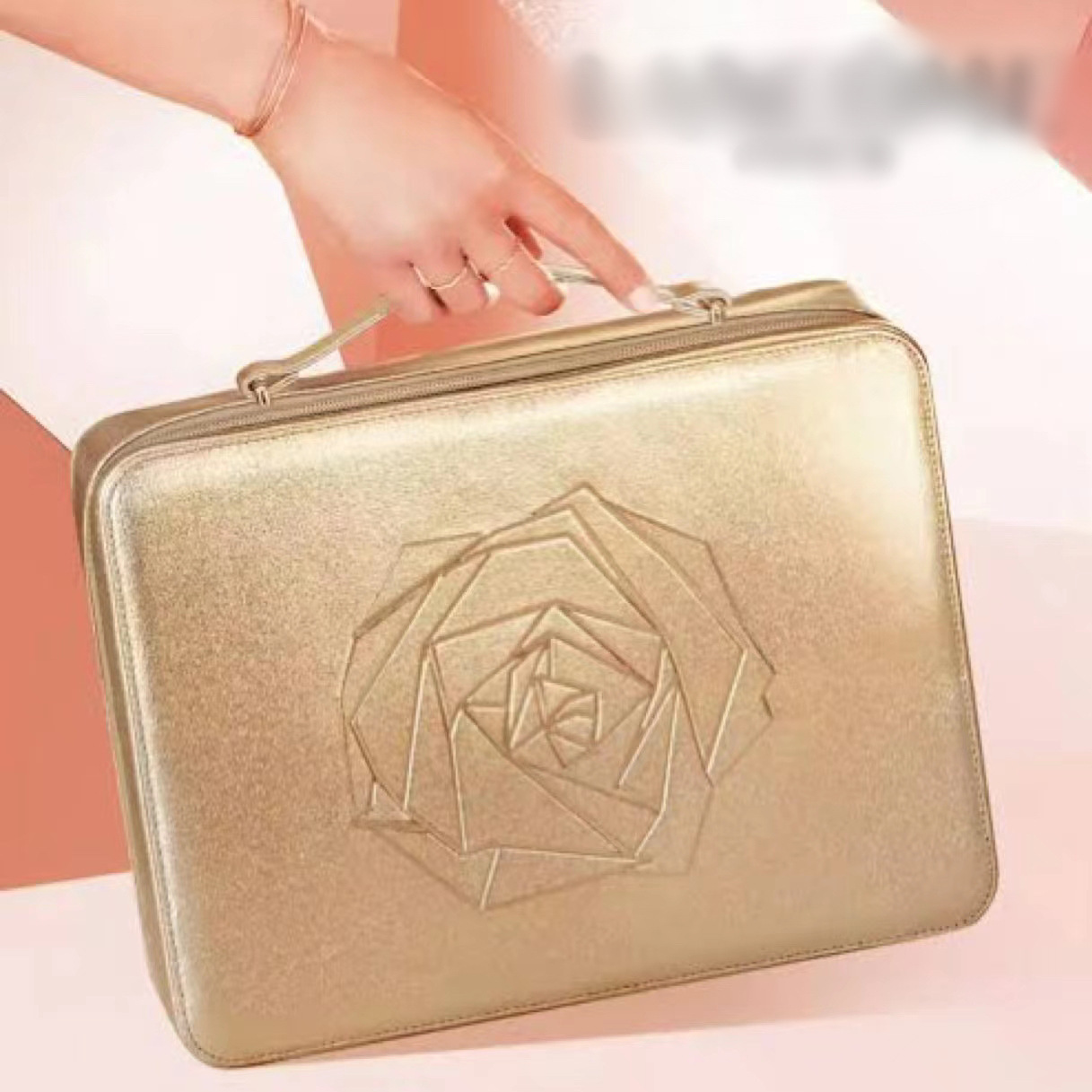 专柜原单新款 金黄色化妆盒 轻奢手提化妆箱 大容量收纳包 整理箱