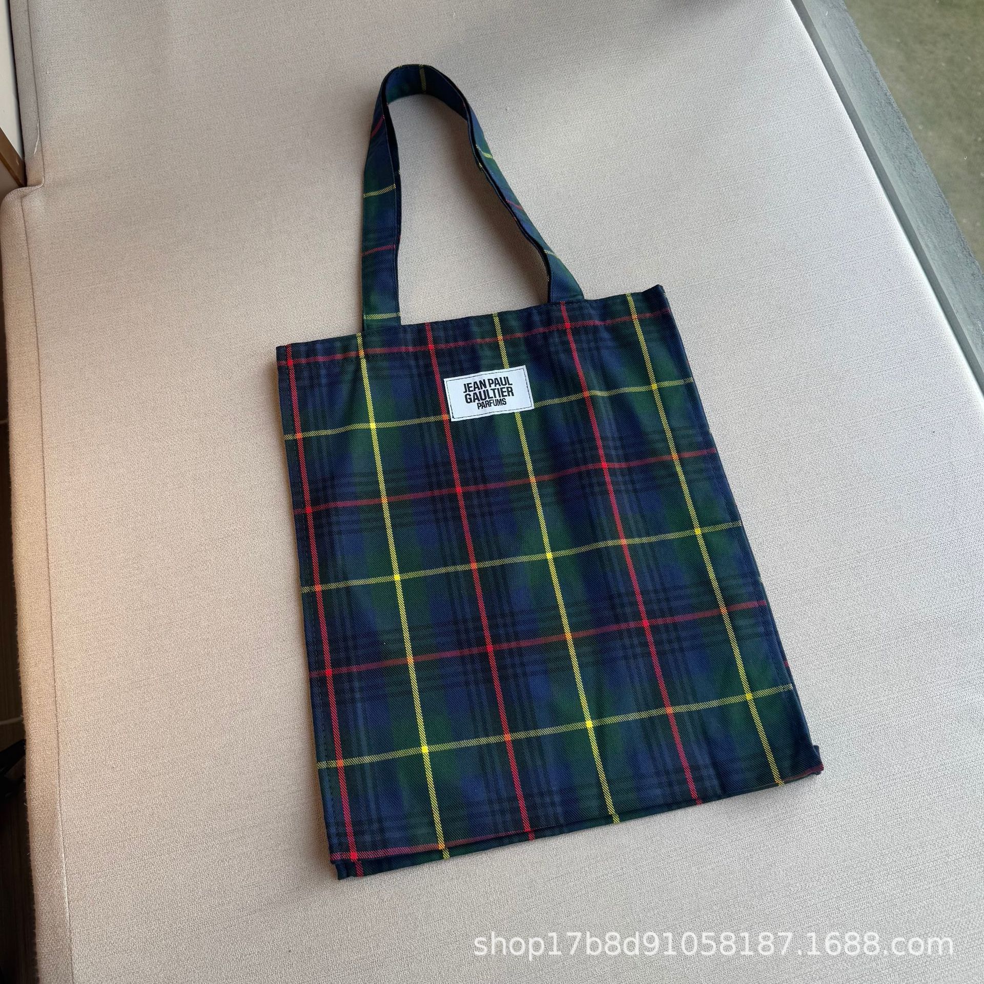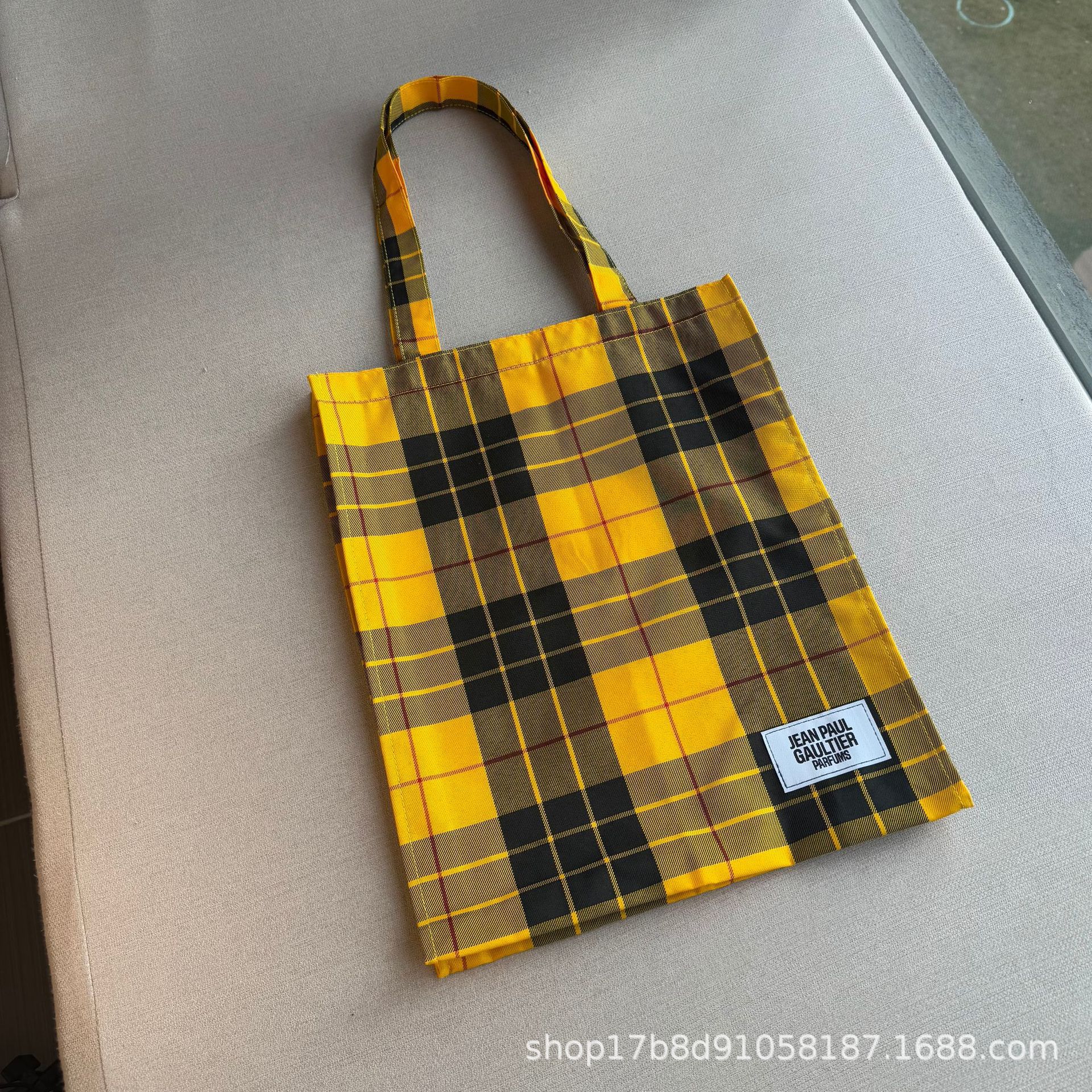 外贸原单 轻奢帆布格子单肩包 百搭手提环保购物袋 托特包