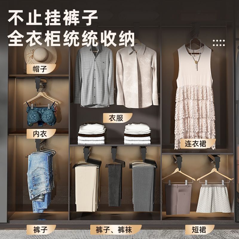多功能衣柜内部改造抽拉滑轨顶装推拉伸缩式伸缩衣柜收纳裤架其他