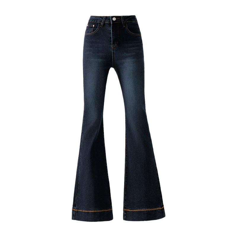 2026春季新款高腰弹力复古牛仔裤女宽松简约百搭阔腿喇叭裤九分裤