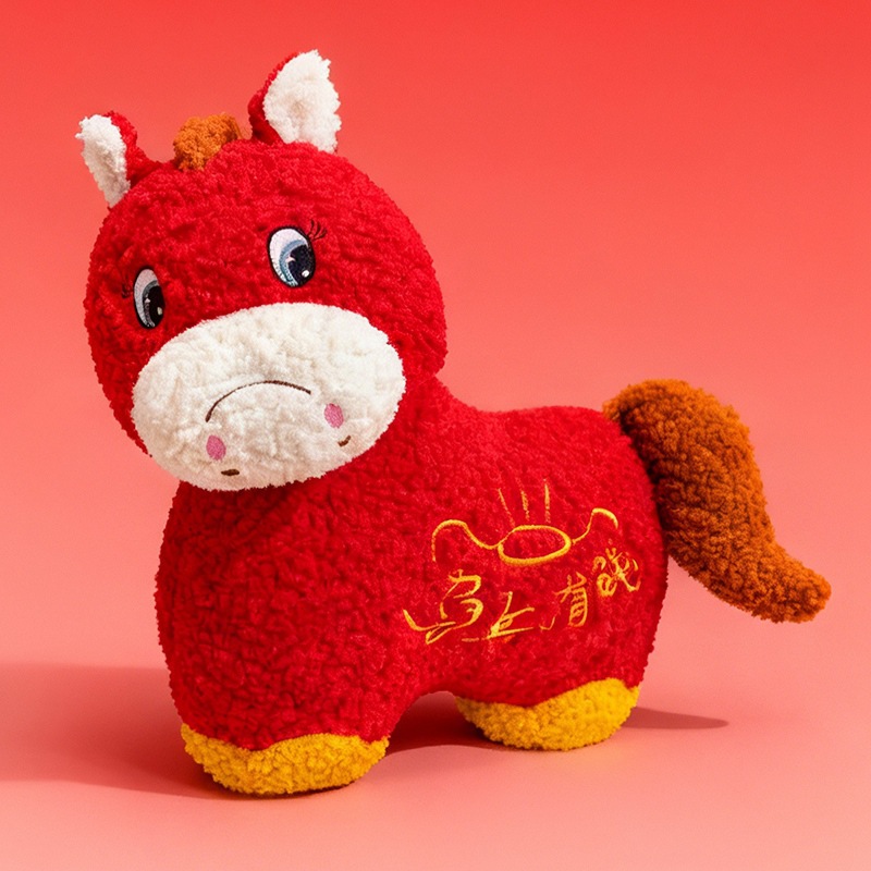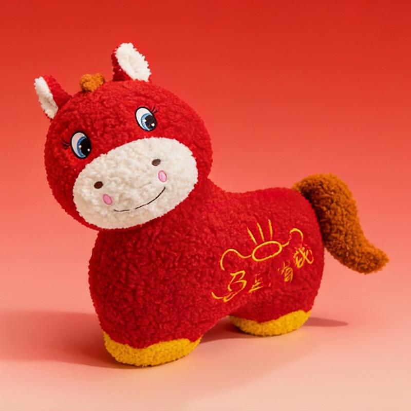 新年小马毛绒公仔玩偶新款2026吉祥物马上有钱哭哭马摆件新年礼物