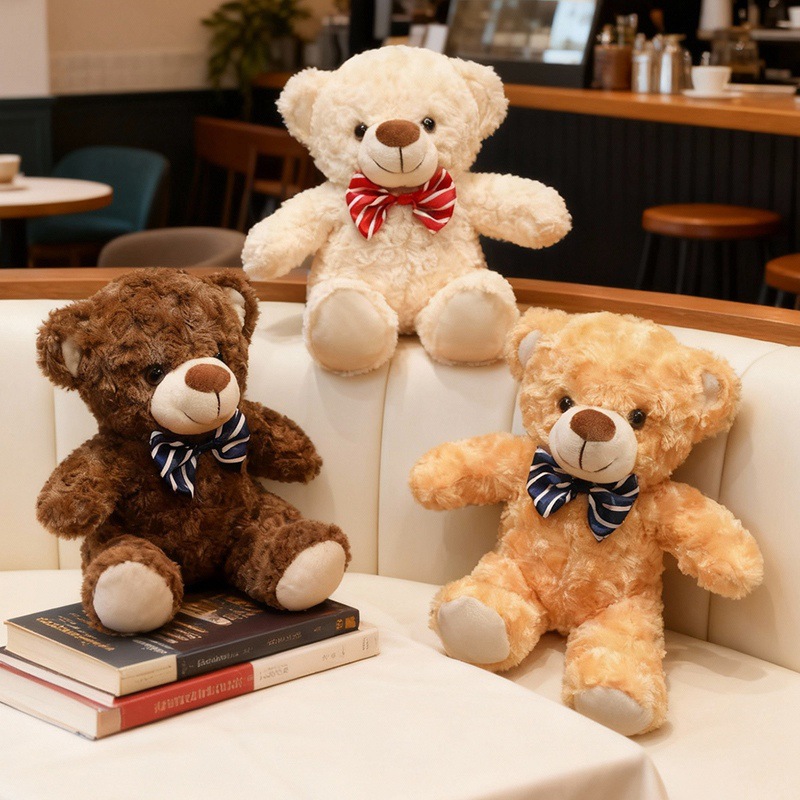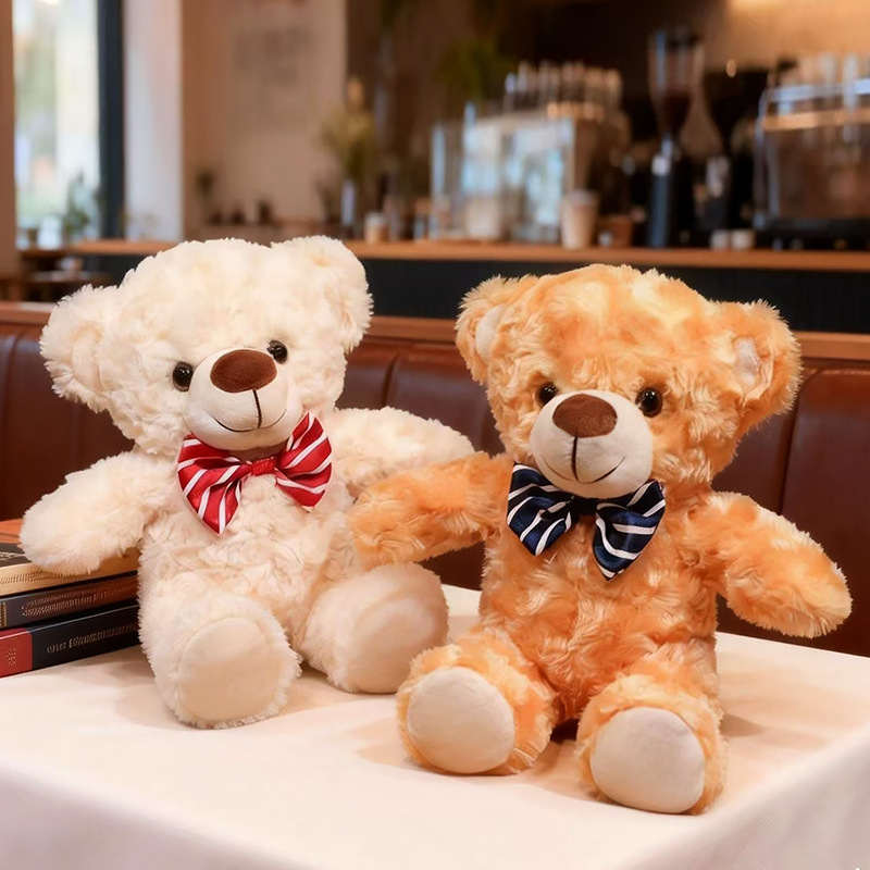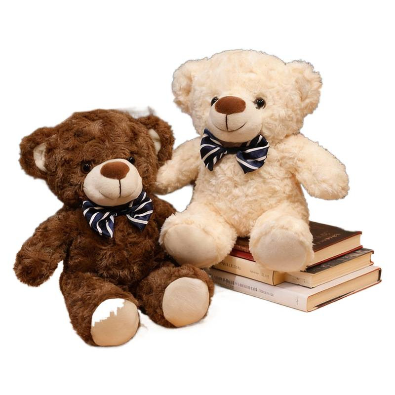 跨境新款领结熊可爱领结泰迪熊儿童陪伴布娃娃白粉熊毛绒玩具