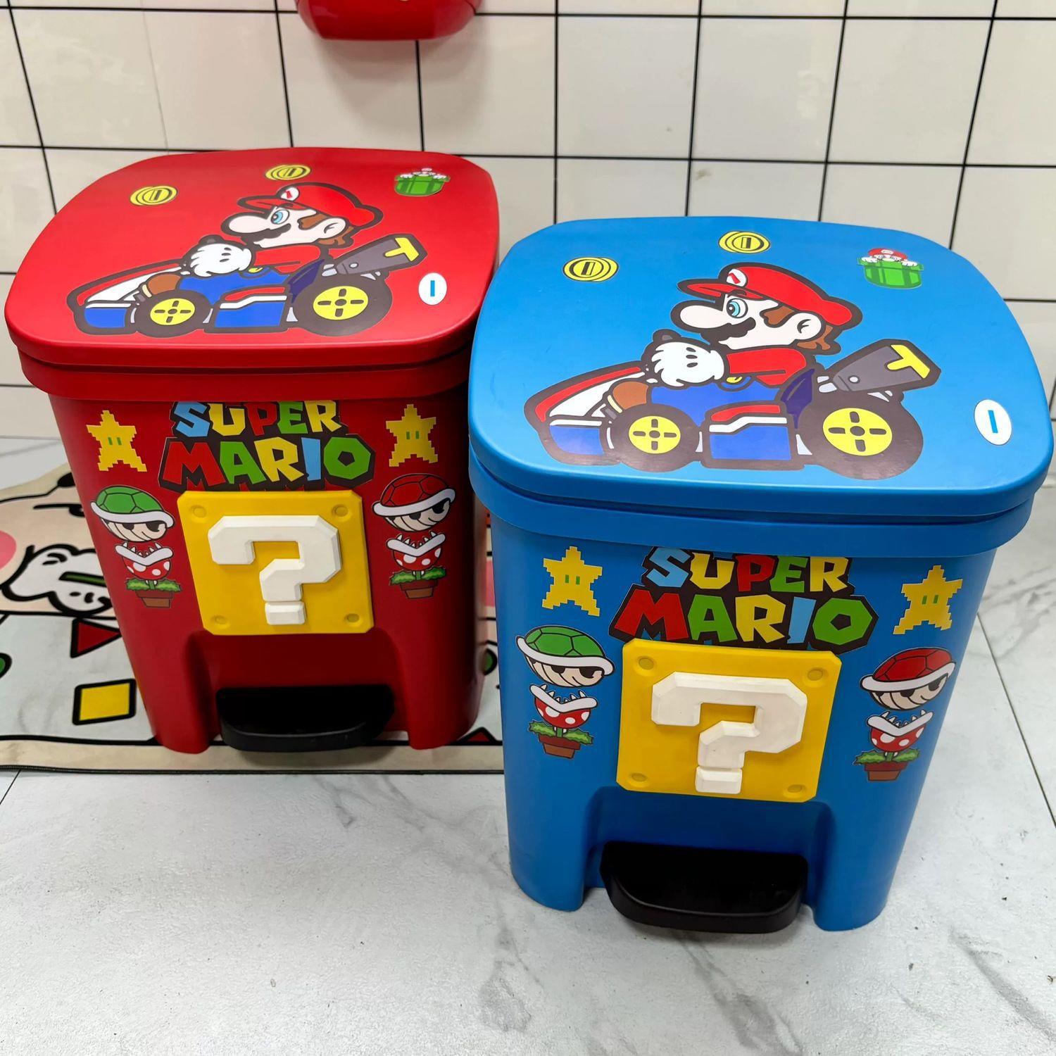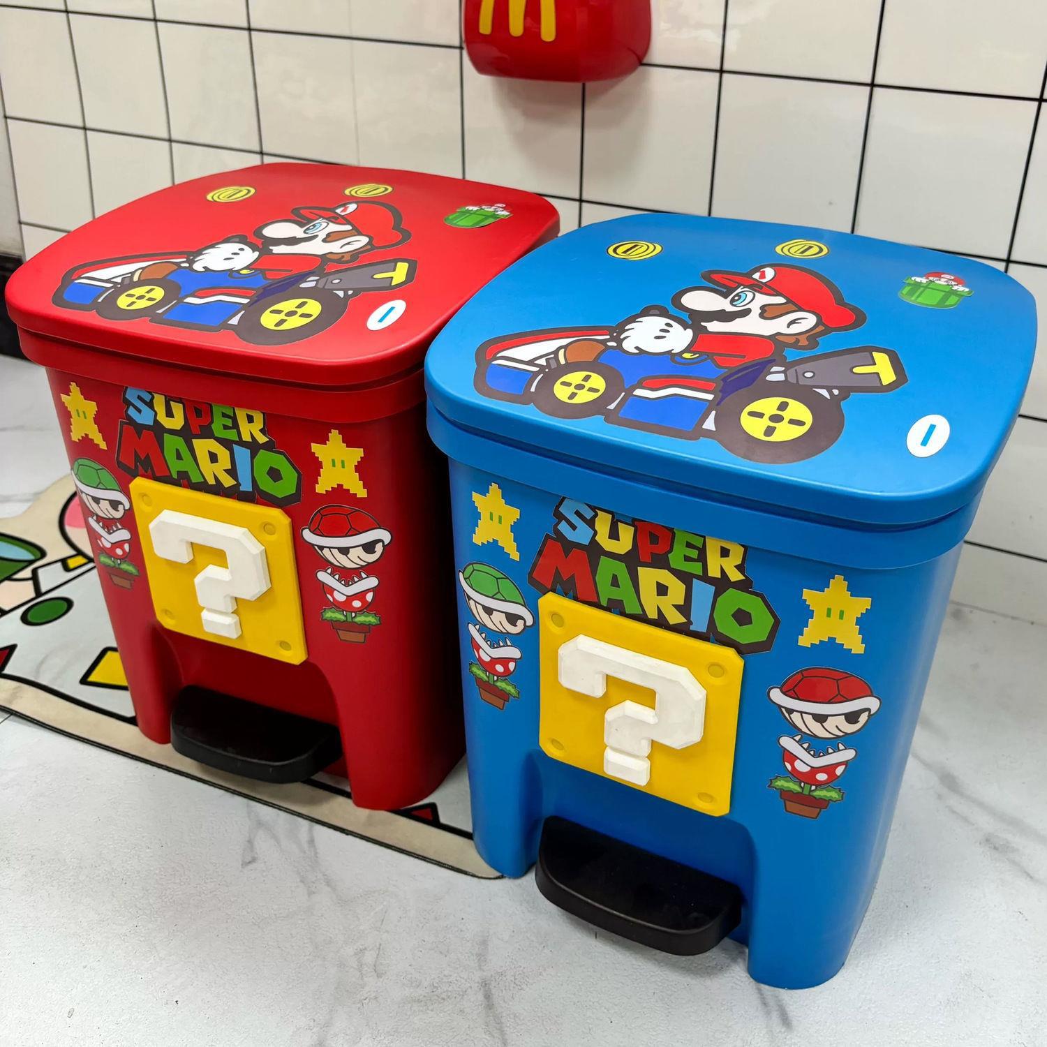 开车马里奥垃圾桶可爱高颜值创意家用卧室卫生间客厅脚踏带盖纸篓