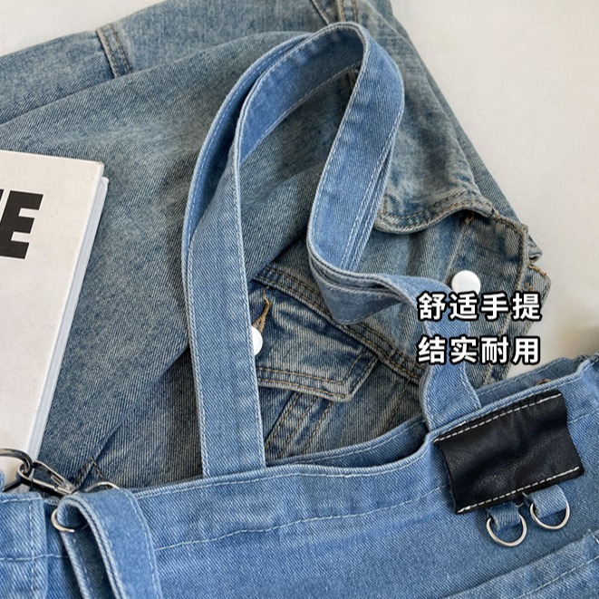 大学生托特包少女大容量牛仔潮新款单肩包斜挎手提包小众设计背包
