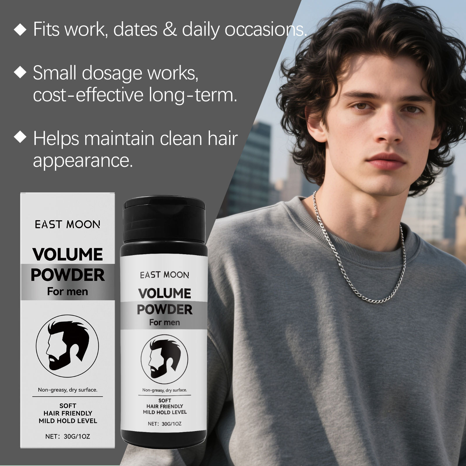 East Moon 男士造型丰盈粉 免洗洁净造型丰盈刘海清爽定型粉