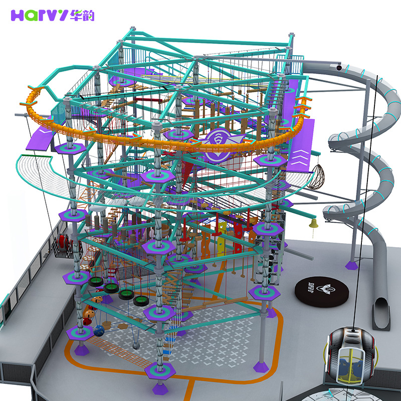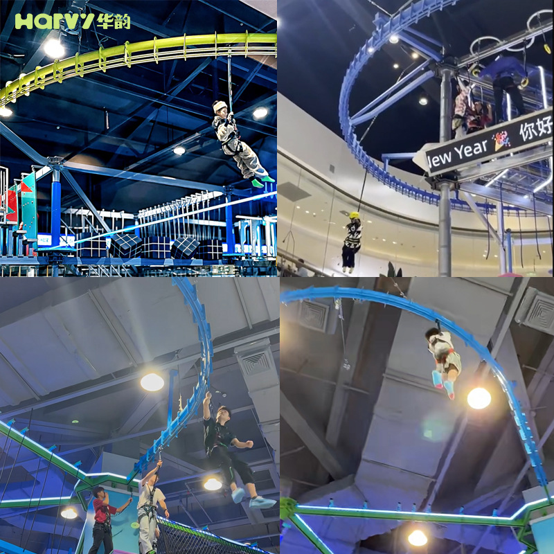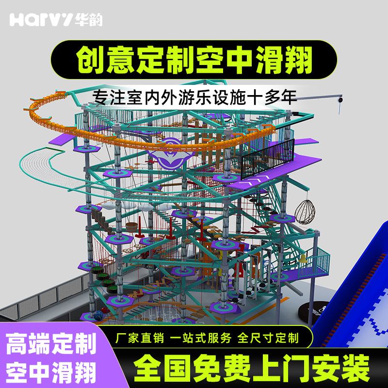 室内潮玩运动馆项目高空滑索空中滑翔空中飞人无动力拓展游乐设备