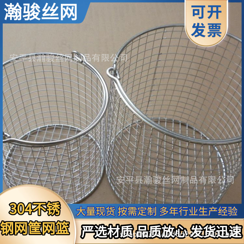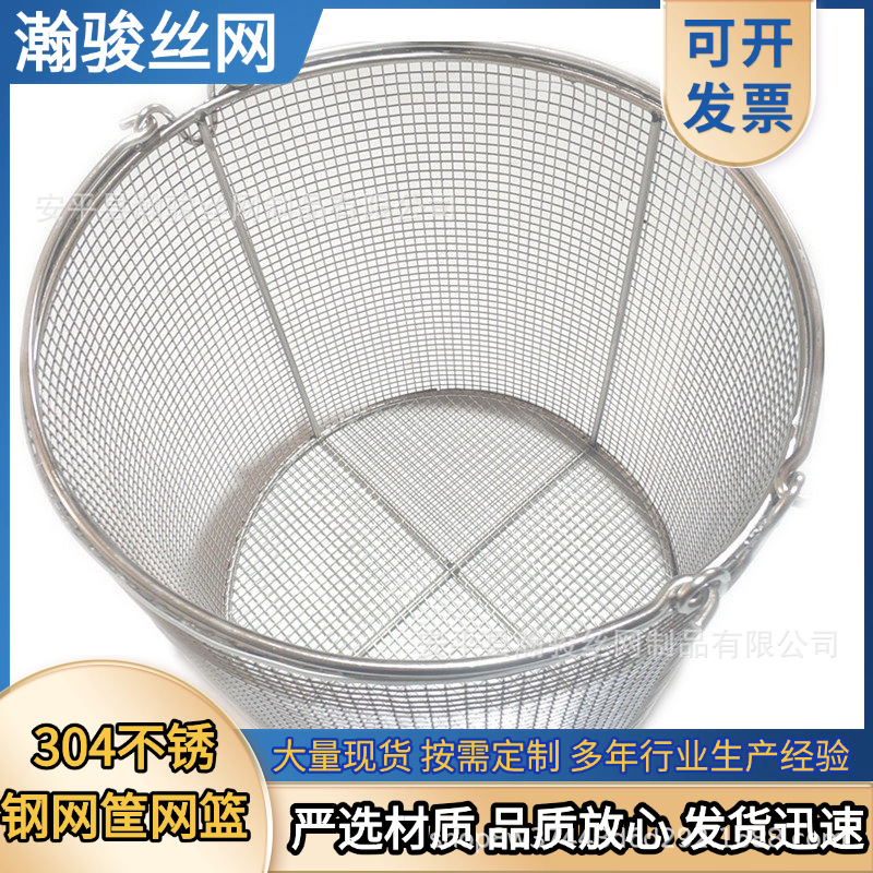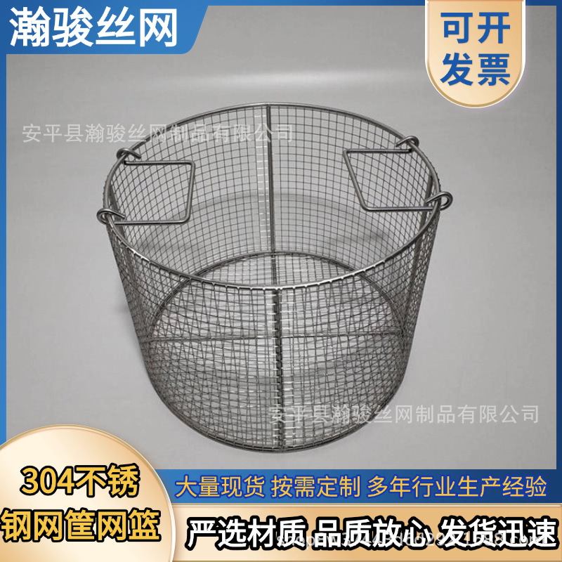 圆形不锈钢网桶 零部件清洗沥水篮金属网筐双提手不锈钢消毒网筐