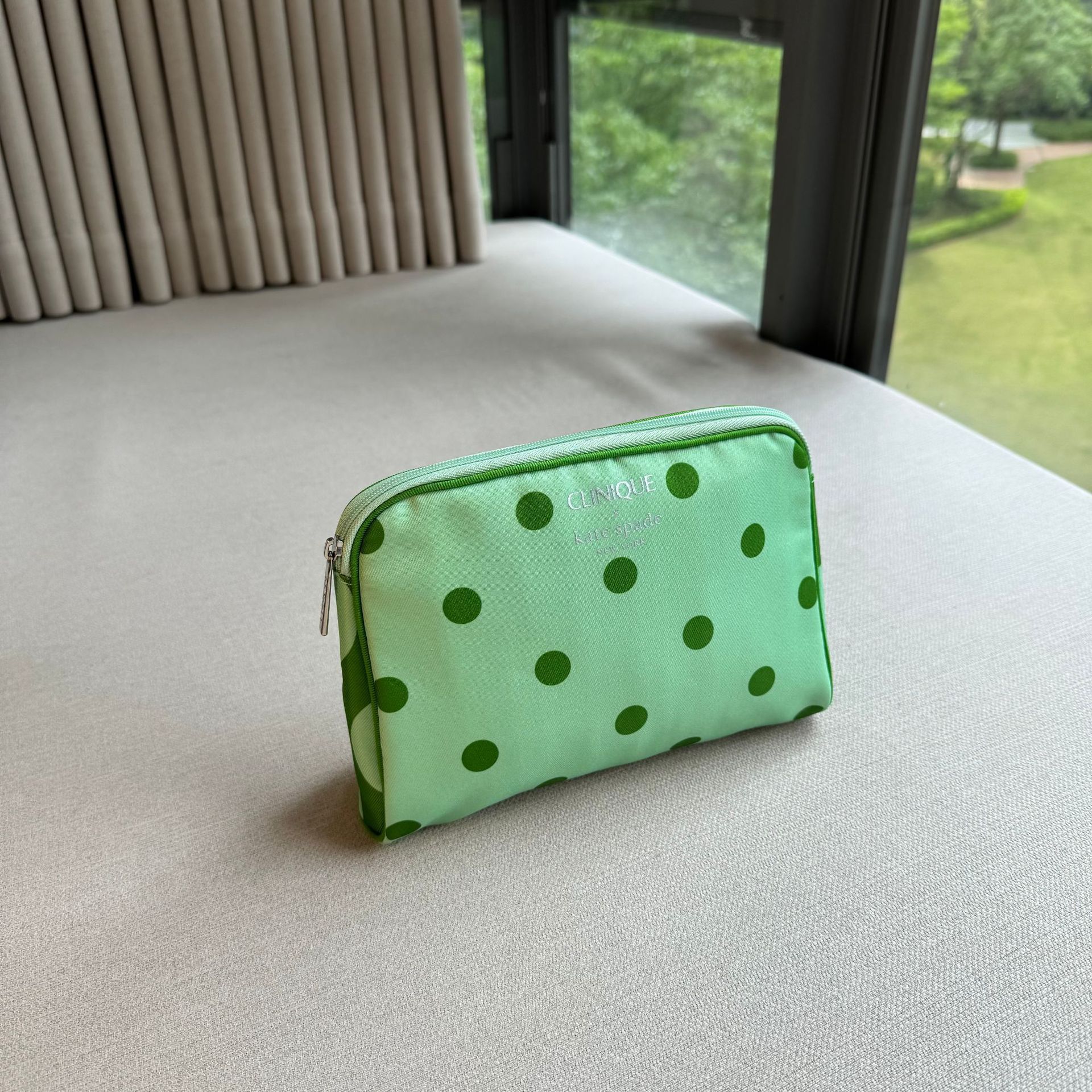 欧美赠品 联名限量绿圆点化妆包 旅行便携收纳包 轻奢款洗漱包