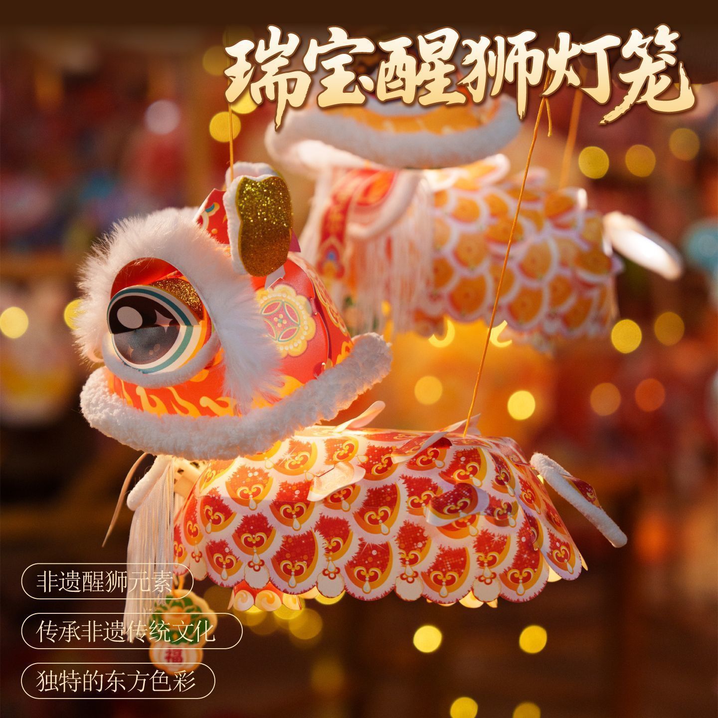 10个新款春节手工儿童发光花灯材料醒狮手提灯笼舞狮冬瓜形简约风