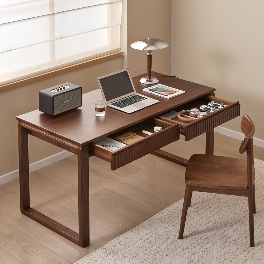 北美黑胡桃木实木书桌办公学习桌卧室电脑桌写字台现代简约工作台
