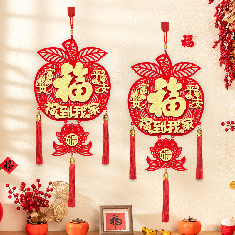 新年装饰春节中国结家居客厅玄关挂饰挂墙红苹果挂件平安福