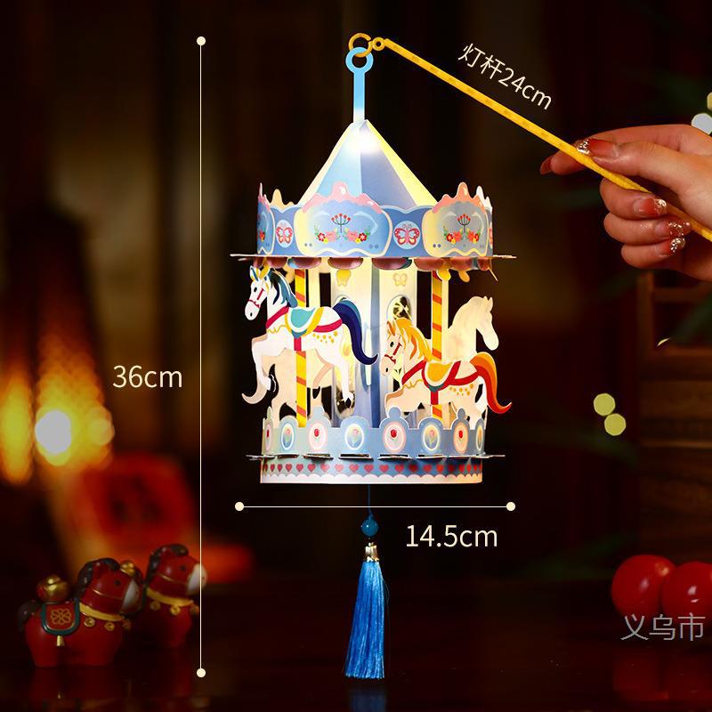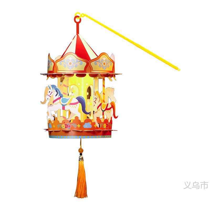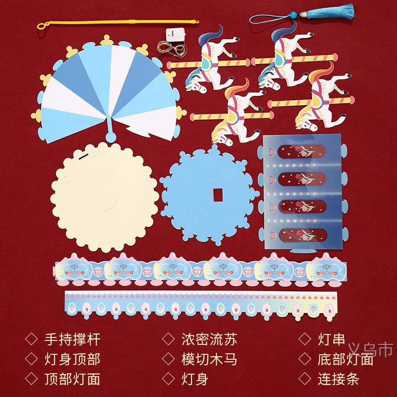 马年新款儿童手提灯笼新年手工制作材料包旋转花灯春节灯笼批发