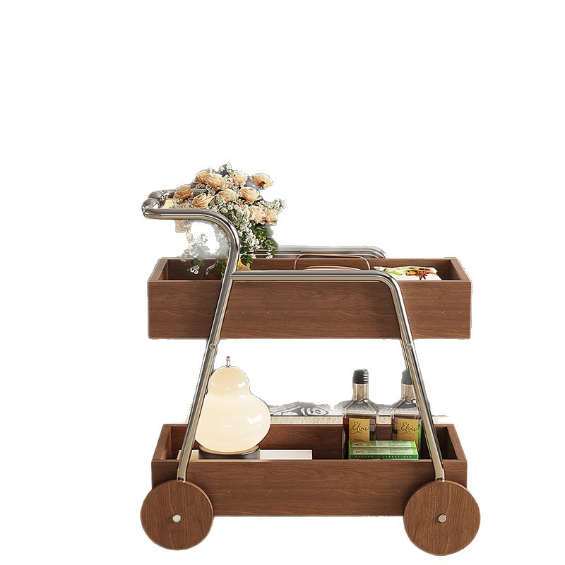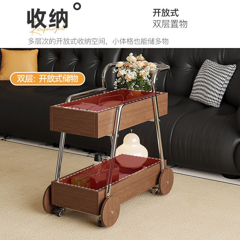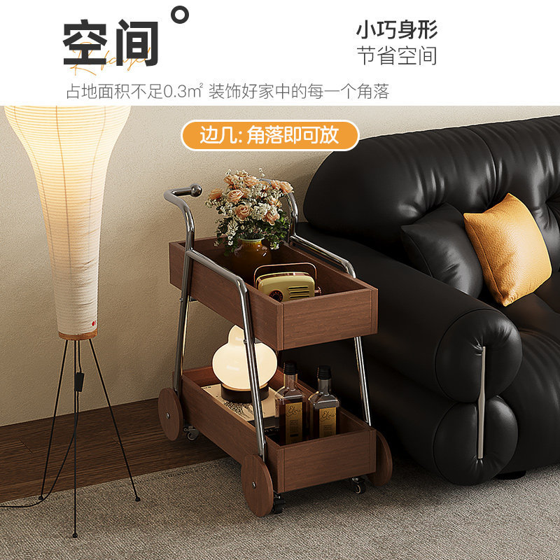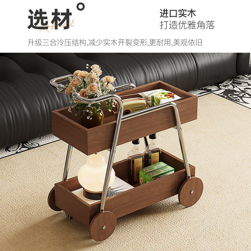 中古风实木推车边几可移动小推车置物架小户型家用收纳沙发边几
