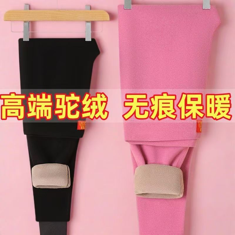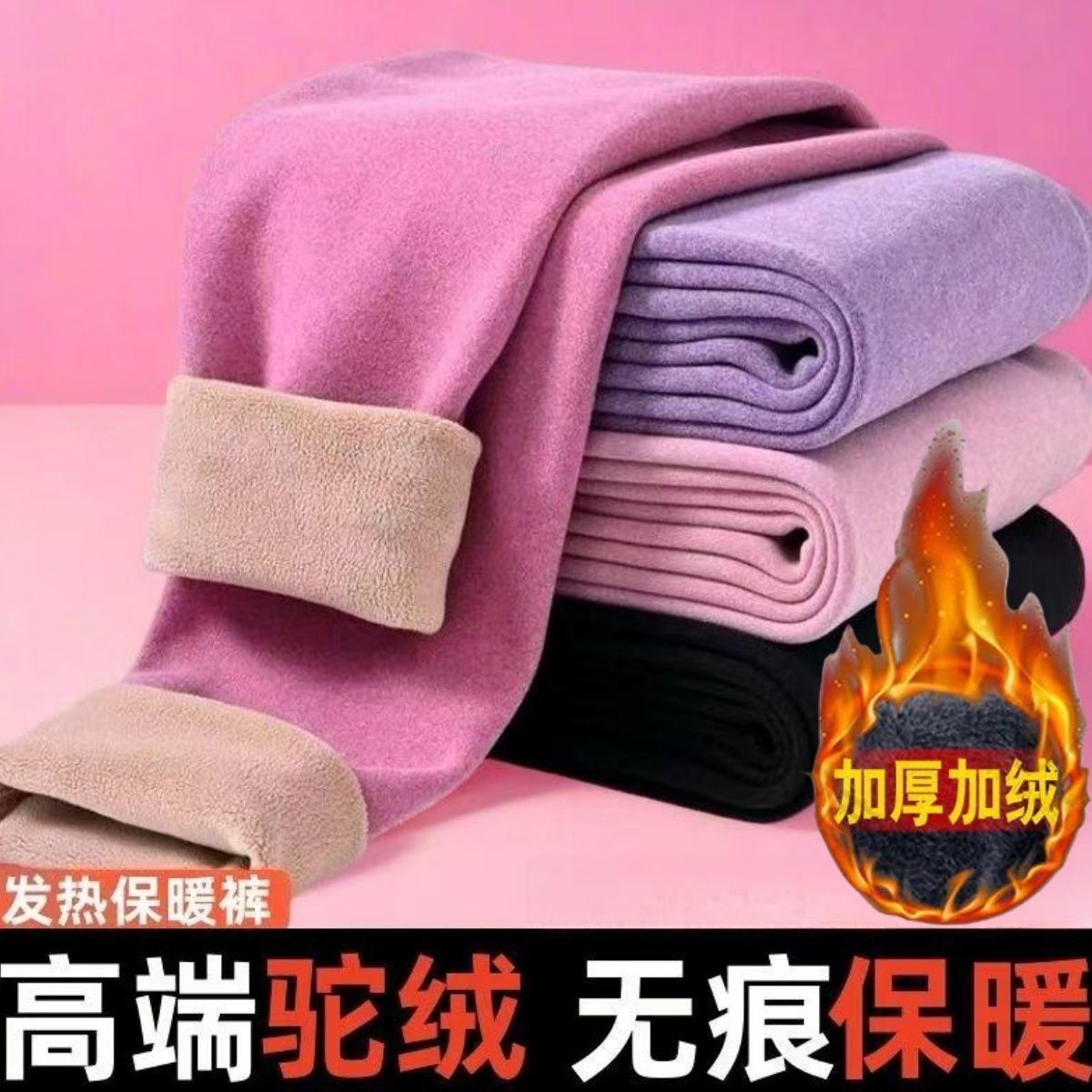 秋冬季女士加绒加厚高腰防寒驼绒裤羊羔绒冬天新款保暖内穿打底裤