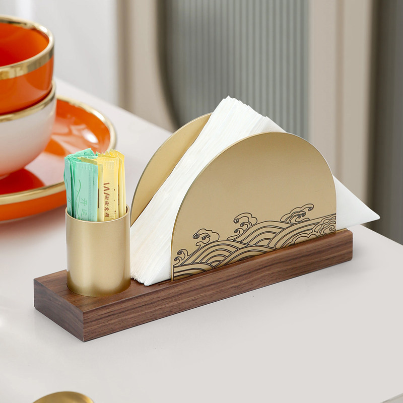 | 尺寸 | 实木/不锈钢-纸巾架+牙签筒 | 尺寸 | 香槟金-半圆纸巾架/牙签筒一体-现货款 |