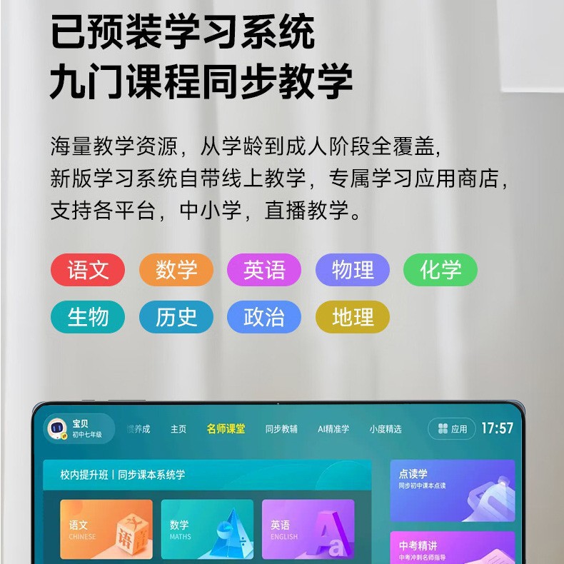 | 内存容量 | 10G运行+256G内存高配版+保护套+送学习系统 | 内存容量 | 16G运行+512G内存顶配版送鼠标键盘+触摸笔+保护套+送学习软件 |