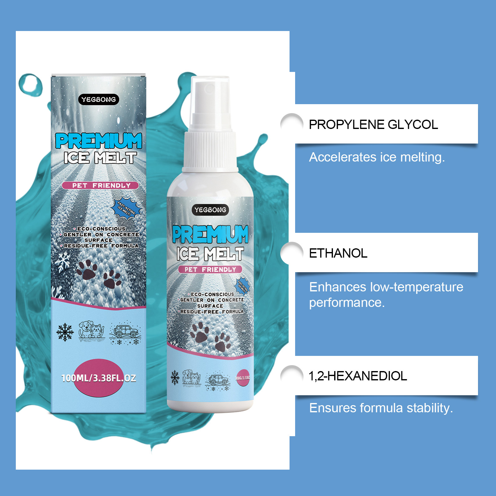 YEGBONG 融雪除冰剂 呵护宠物爪垫融化积雪地面防滑融雪除冰剂