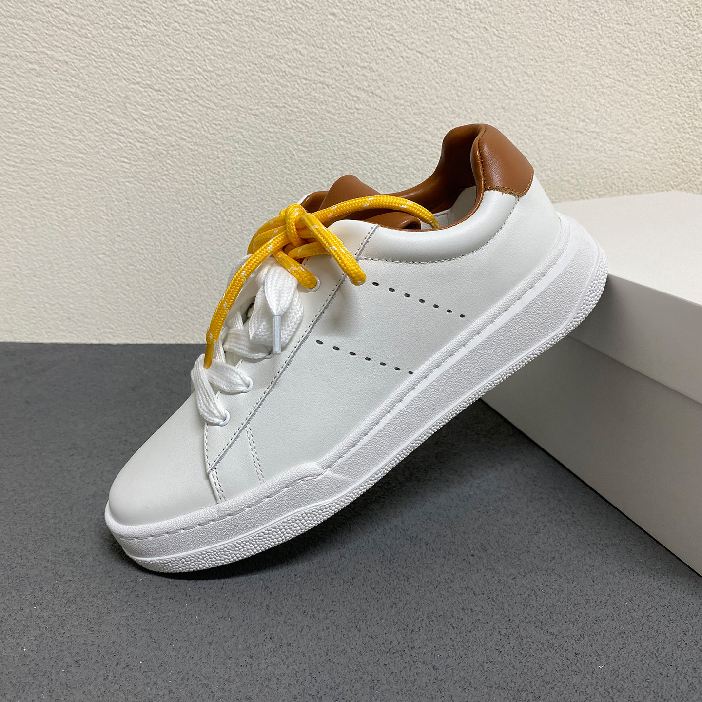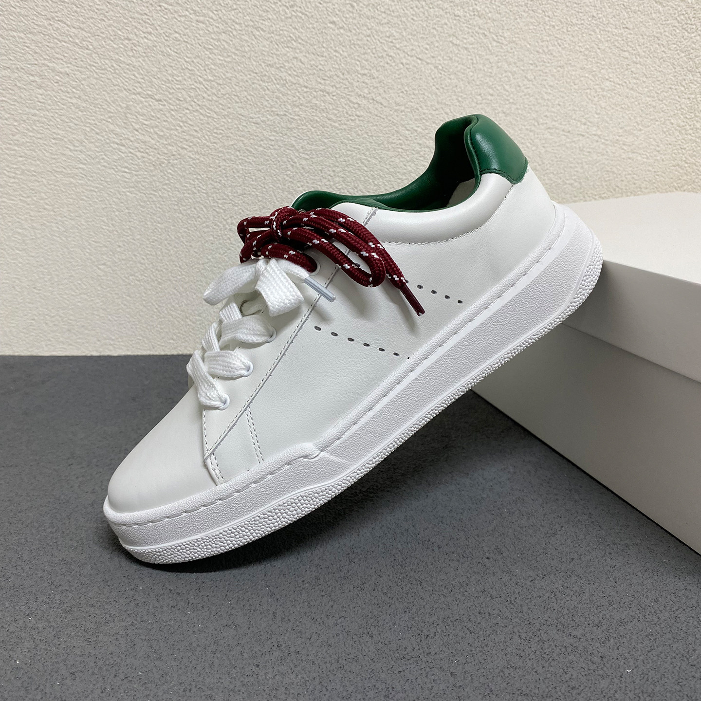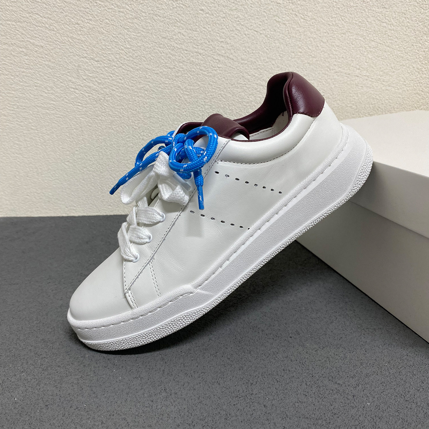 26早春新款法式复古真皮系带小白鞋女厚底双鞋带拼色休闲运动板鞋