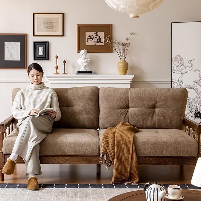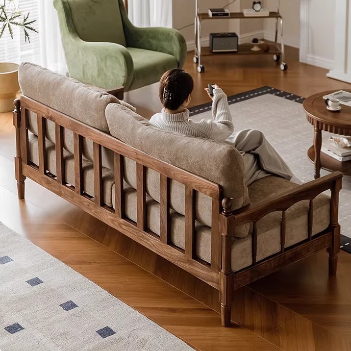 复古实木黑胡桃木沙发三人位小户型中古简约直排北欧日式客厅家具