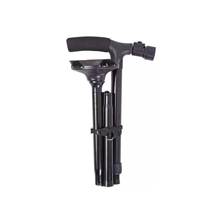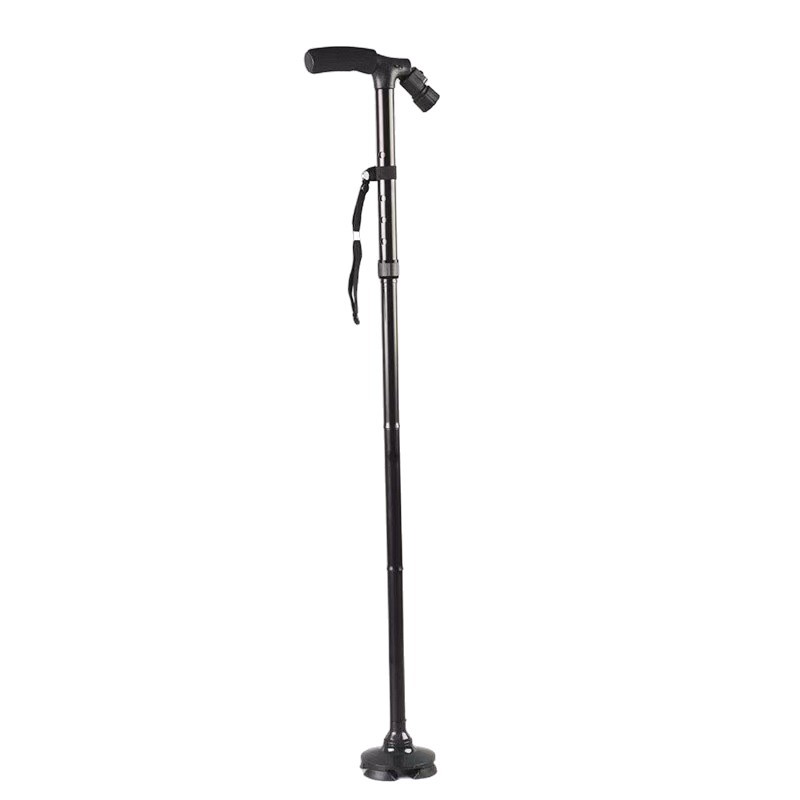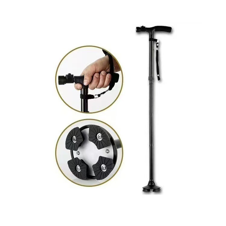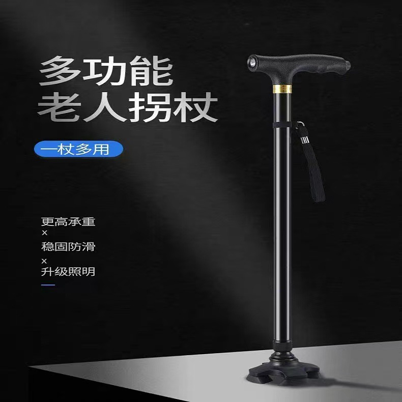 跨境多功能扶手老人拐杖铝合金伸缩折叠LED灯不倒翁四脚拐杖批发