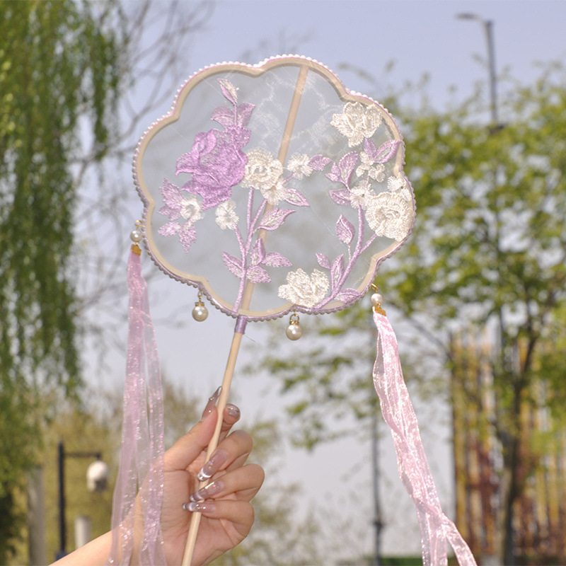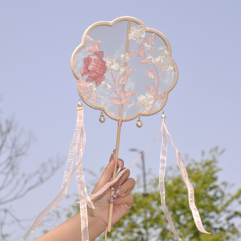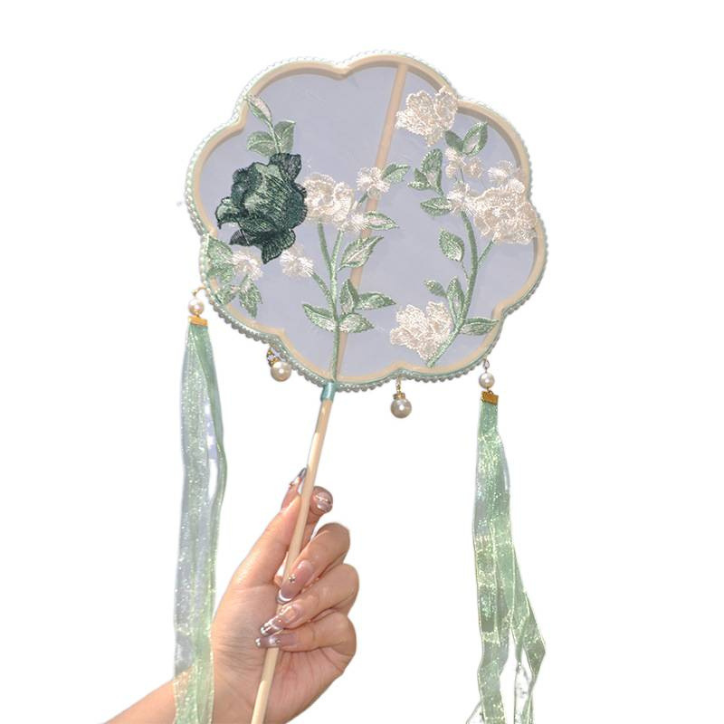 中国风复古刺绣团扇舞蹈扇古典舞表演扇子汉服搭配拍照长柄团扇子