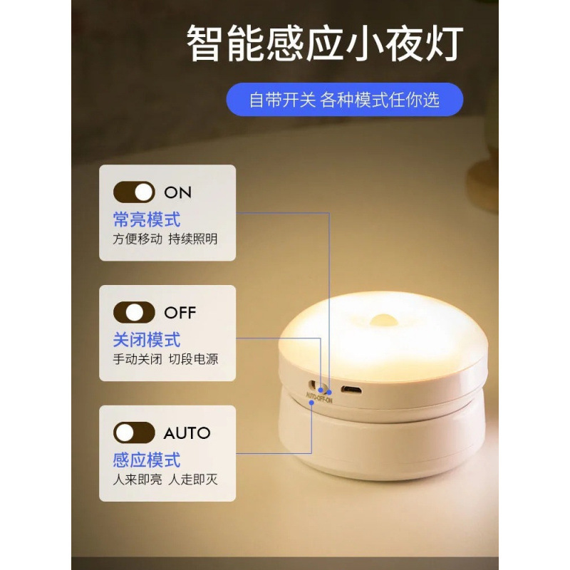 可充电式感应LED小夜灯宿舍寝室小灯卧室床头无线粘贴墙壁灯插道
