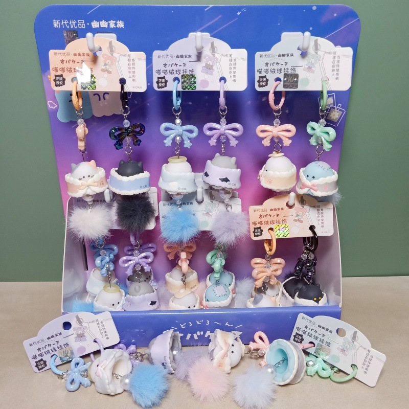 外贸小幽猫咪绒球蝴蝶结挂件ins幽幽家族包包手机钥匙扣挂饰配饰