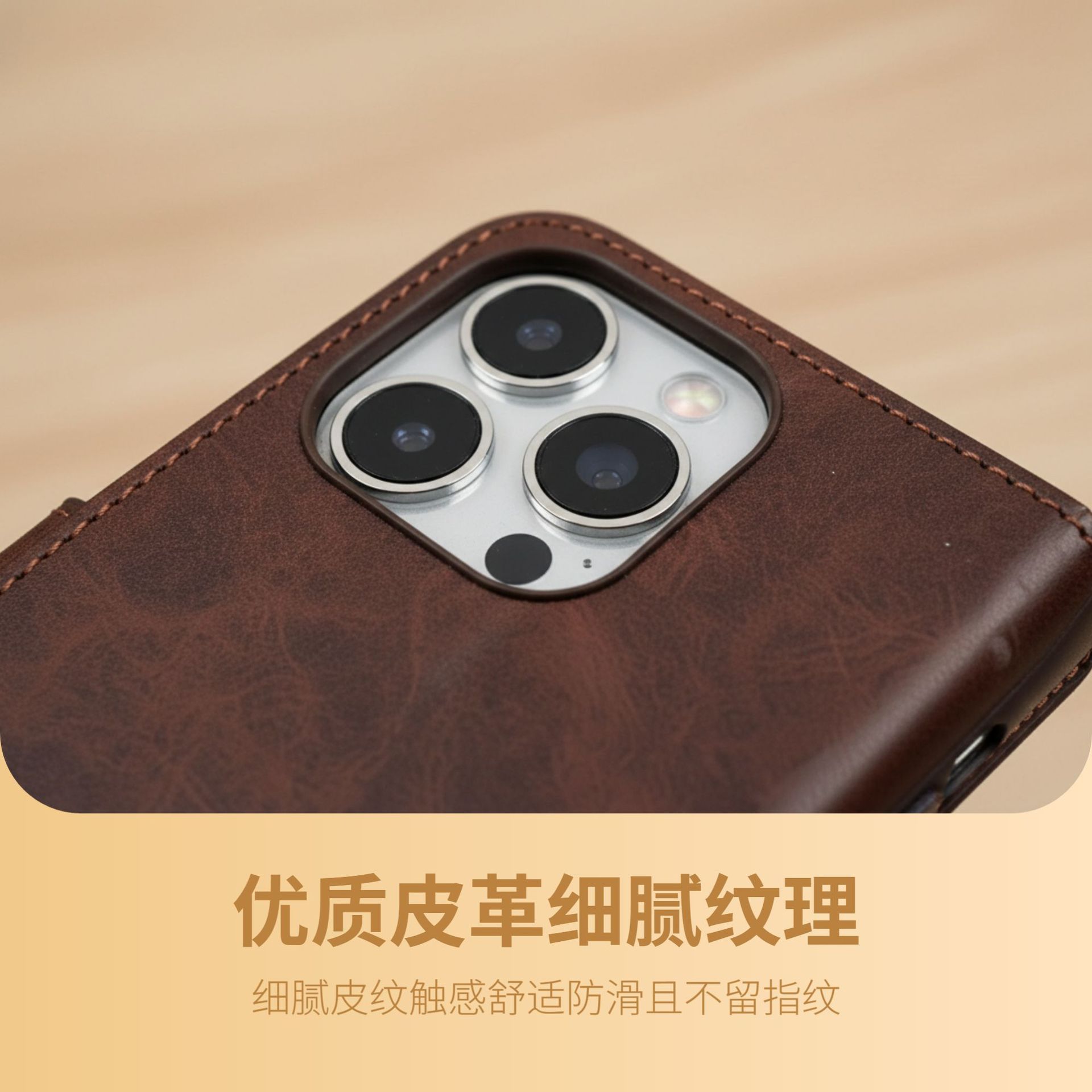 适用苹果14/15/16/17ProMax手机壳紫色拉链皮套钱包式全包防摔女