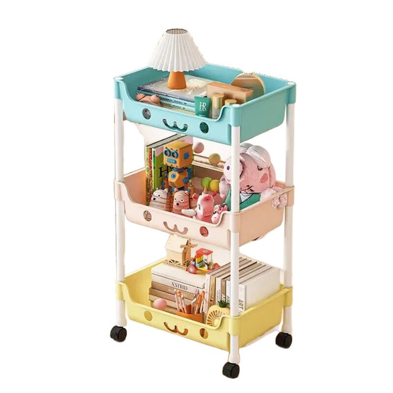 外贸小推车置物架桌下零食架客厅落地多层收纳储物架卡通笑脸货架