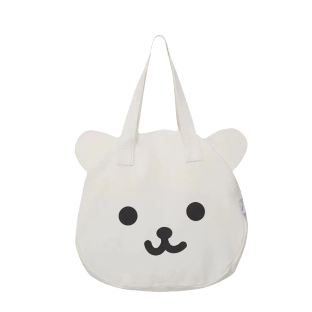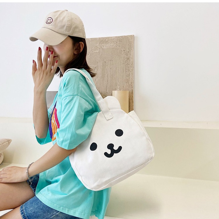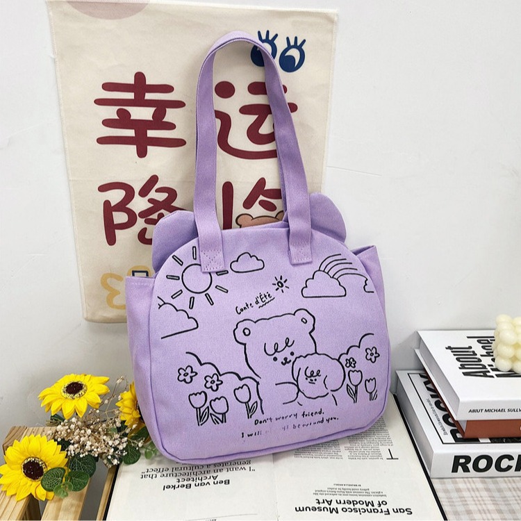 2025新款帆布包包女学生可爱熊头双面单肩包韩版大容量手提饭盒包