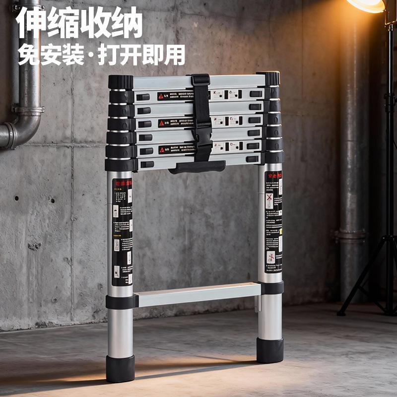 铝合金伸缩直梯单面升降梯家用折叠梯阁楼楼梯便捷竹节梯工程梯子