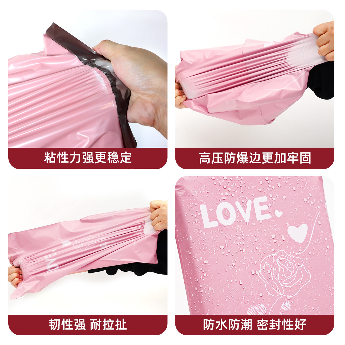 | 规格型号 | 新料#粉色爱心玫瑰【加厚】;30*40+4(100个) | 规格型号 | 新料#粉色爱心玫瑰【加厚】;35*43+4(100个) |