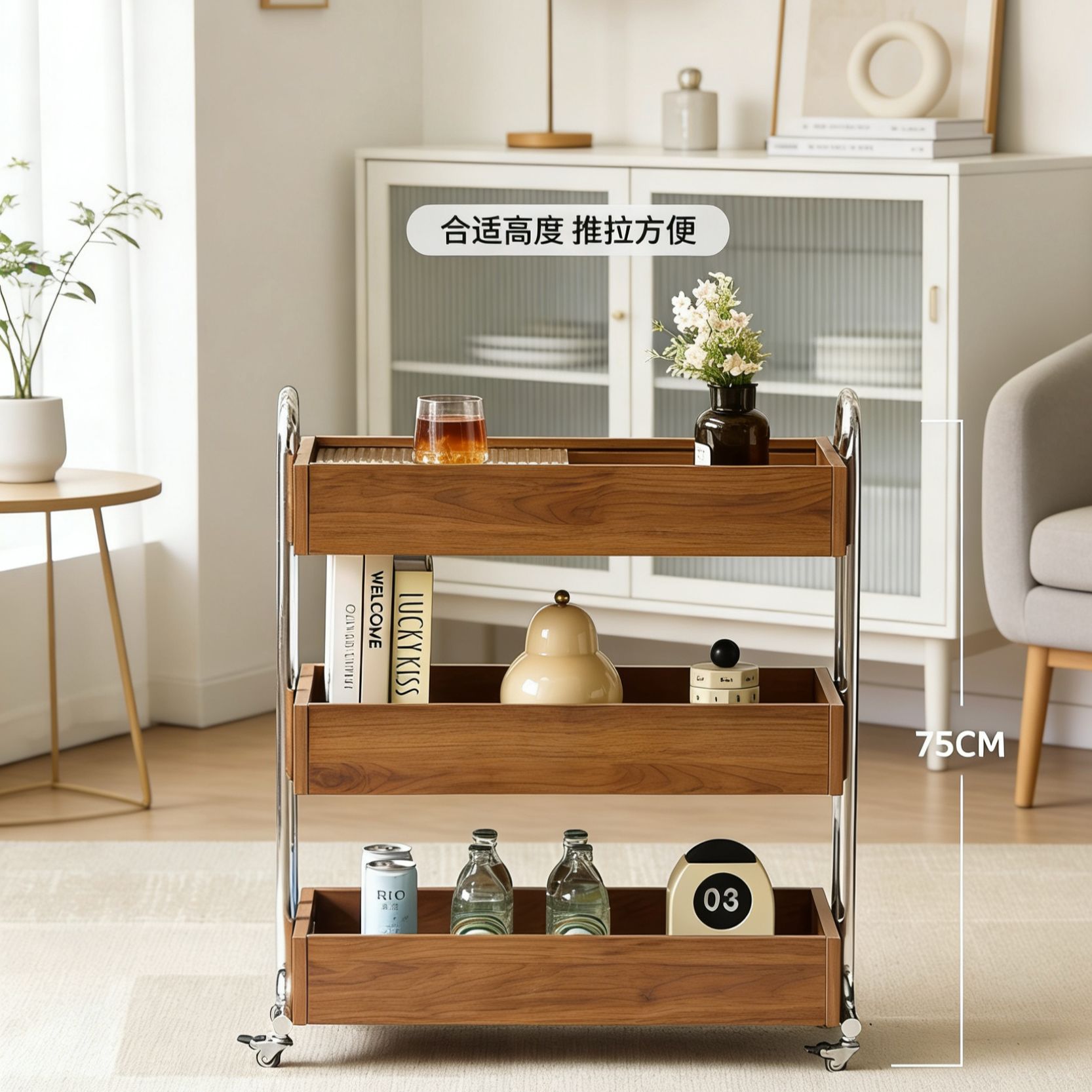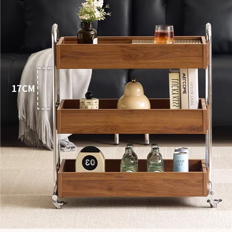 实木边几多层收纳架移动带轮储物推车沙发边几客厅收纳床头置物架